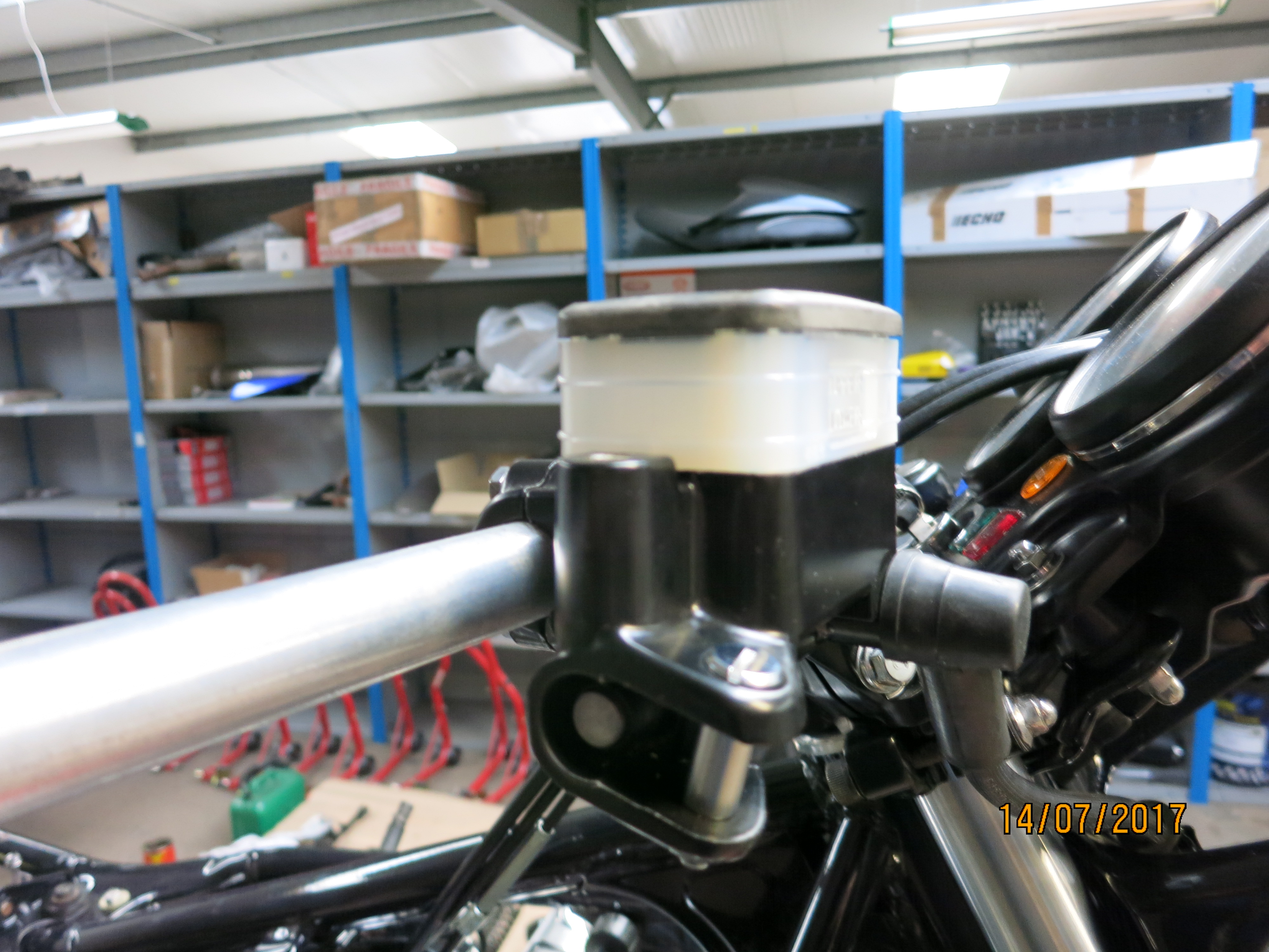 New front brake fluid reservoir, old one was manky and couldn't get it clear again despite several times through the dishwasher. Rear resevior is protected a bit by the side panel so I reused it.