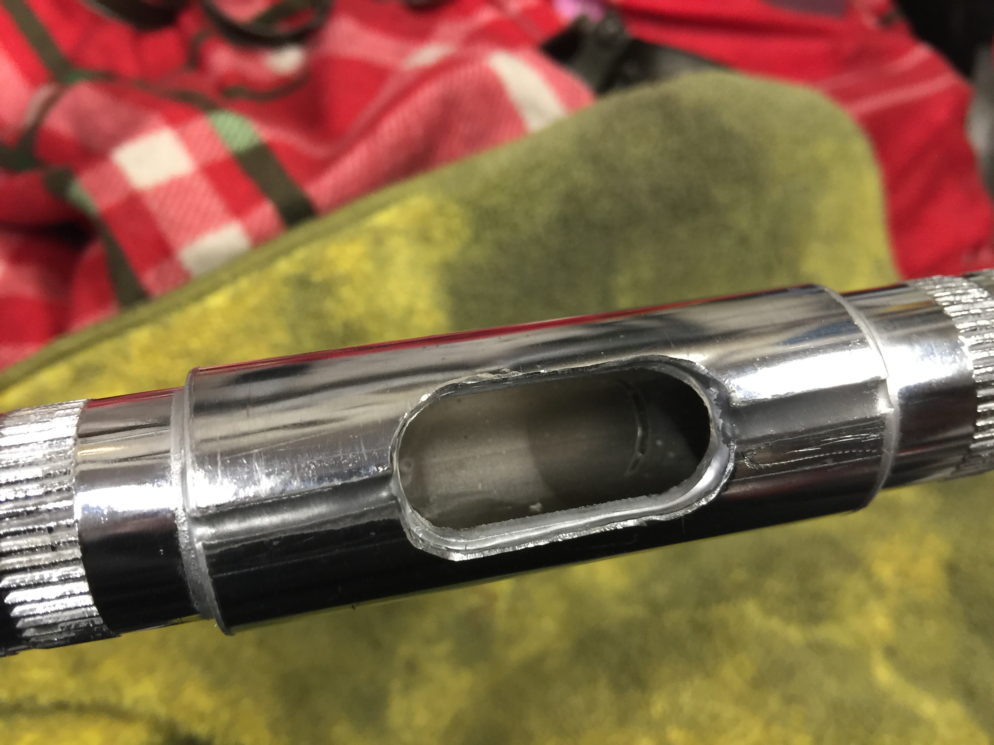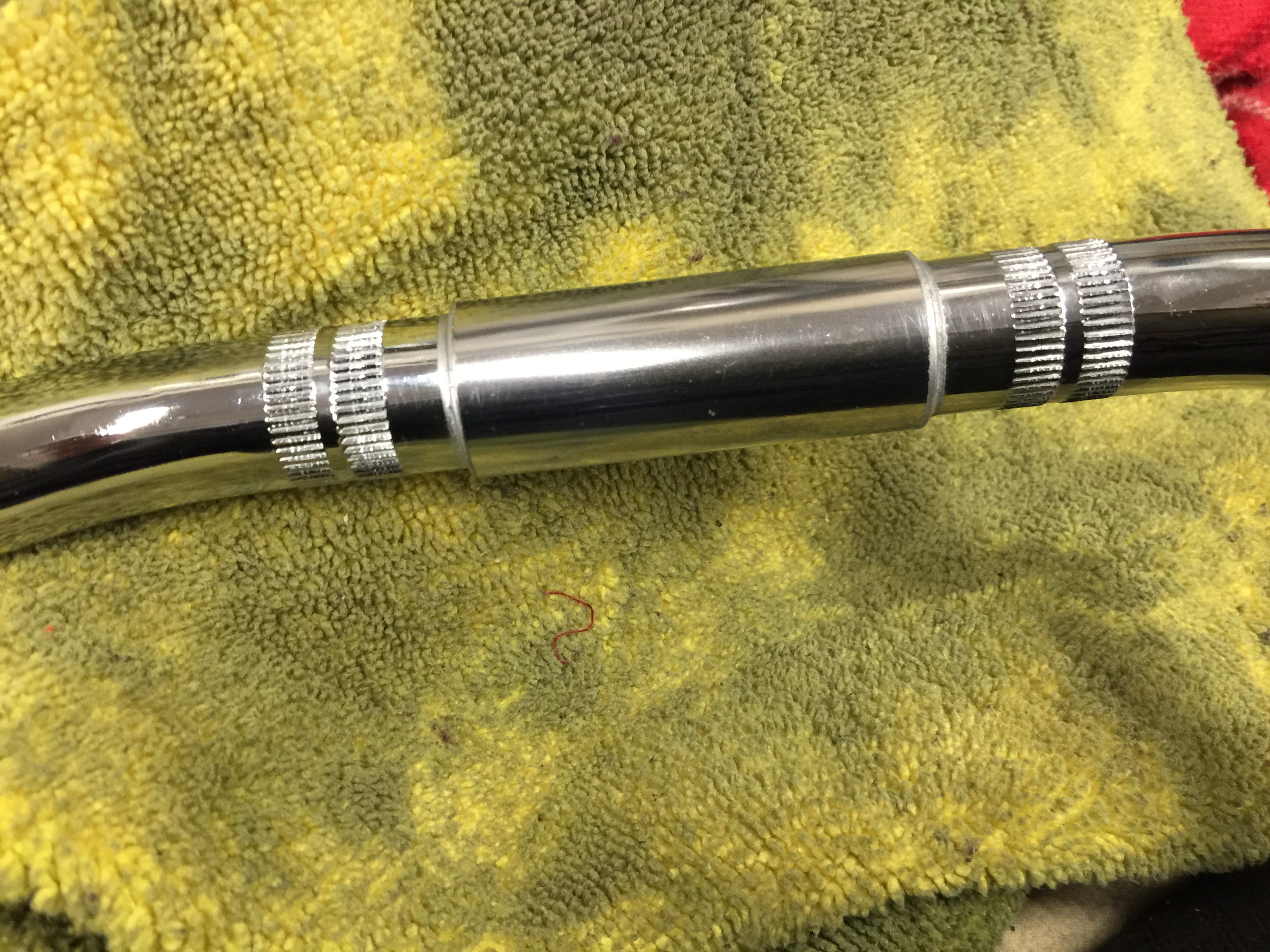 I cut the slot in the short piece of tube and then slit it down it’s length to enable me to open it up. I slipped it over the bars, re formed it to its correct shape and simply JB welded it to the bars. No brazing, no heat at all and I’m pretty sure that unless you know you’d really need to inspect it to work it out.