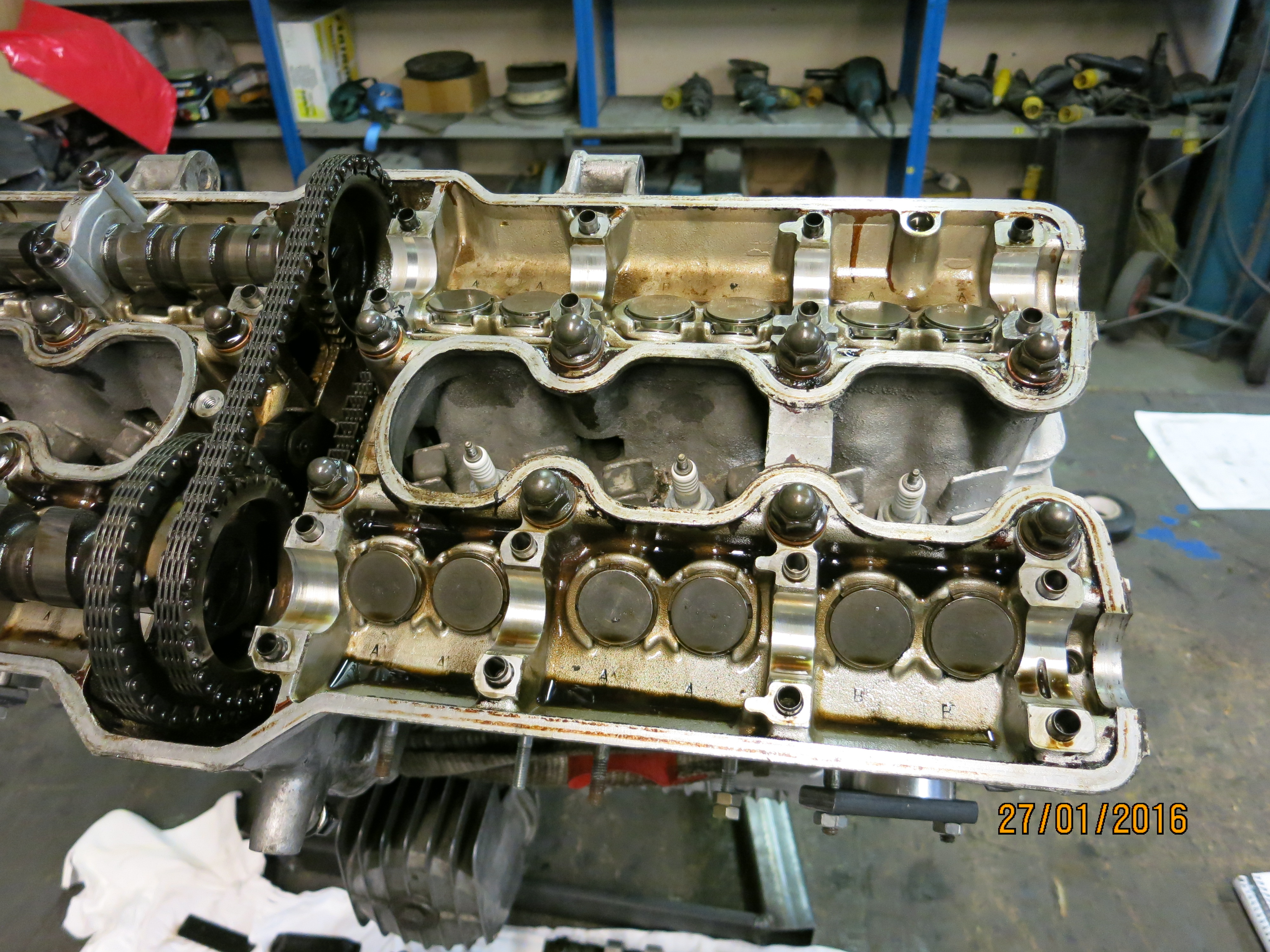 All the shims were either swapped, changed or ground to get the optimum clearance - about 0.005" on these motors. All back into position, they are on top of the buckets on the CB's so no cams out if you need to do them. The numbers are just to let me know where they were and the size.