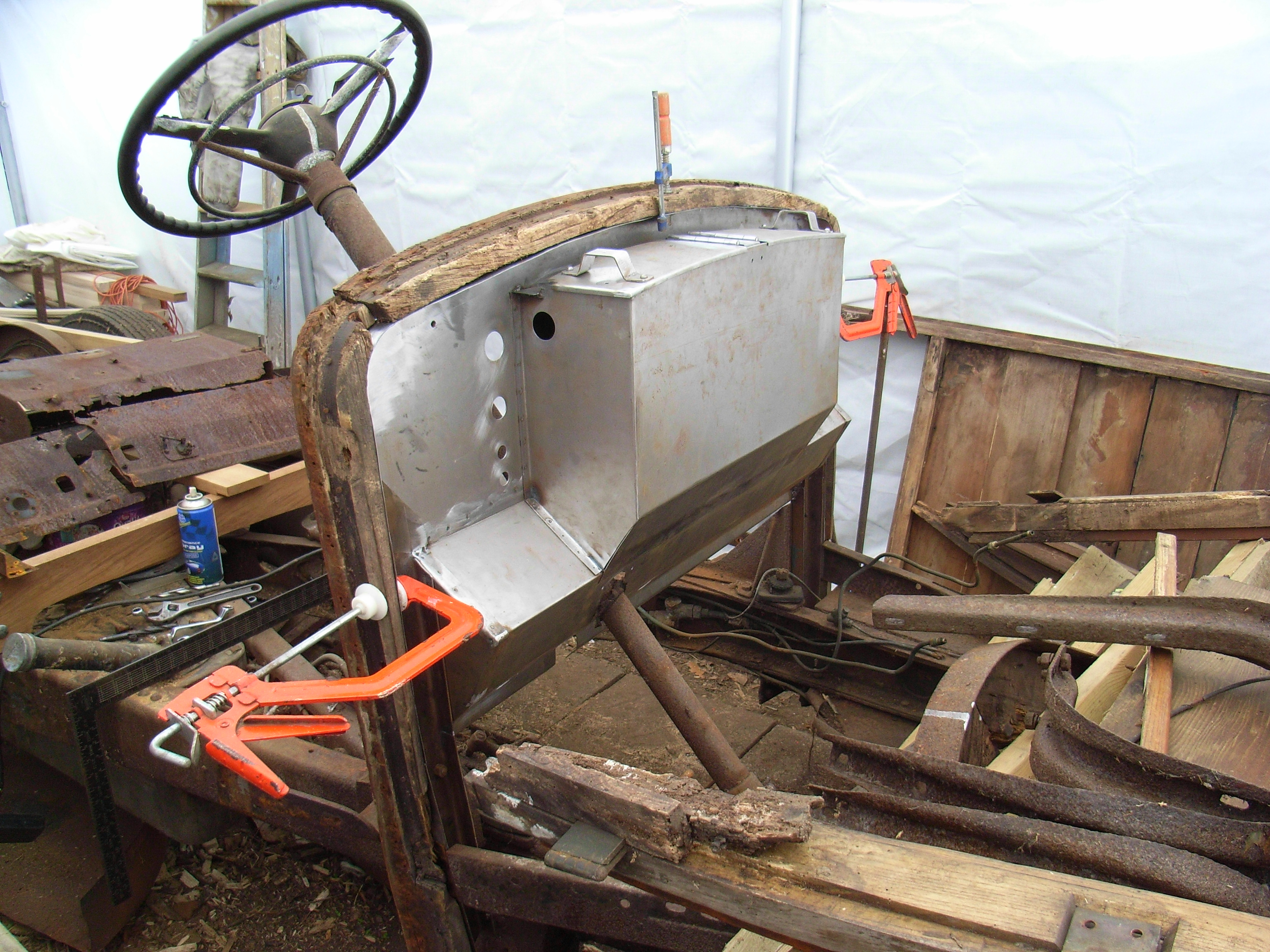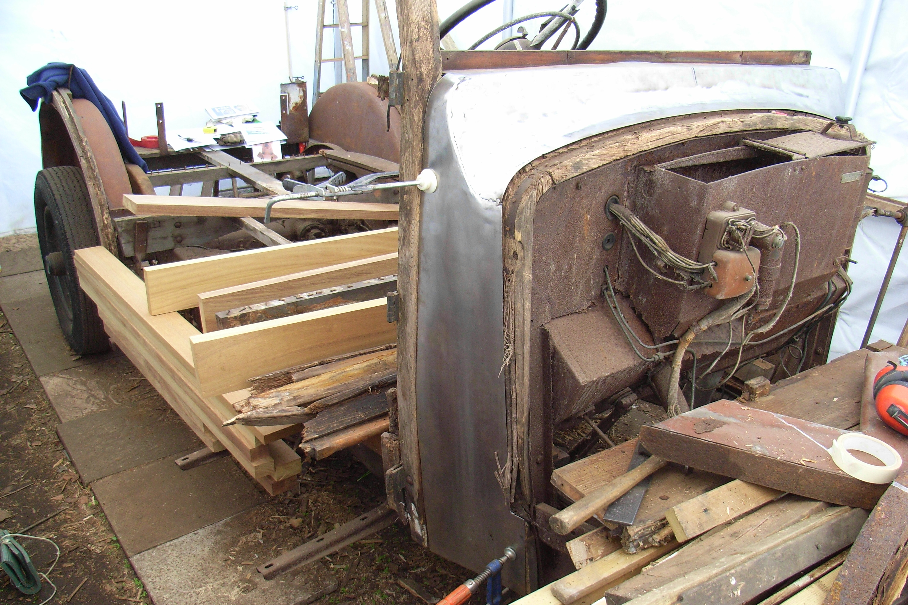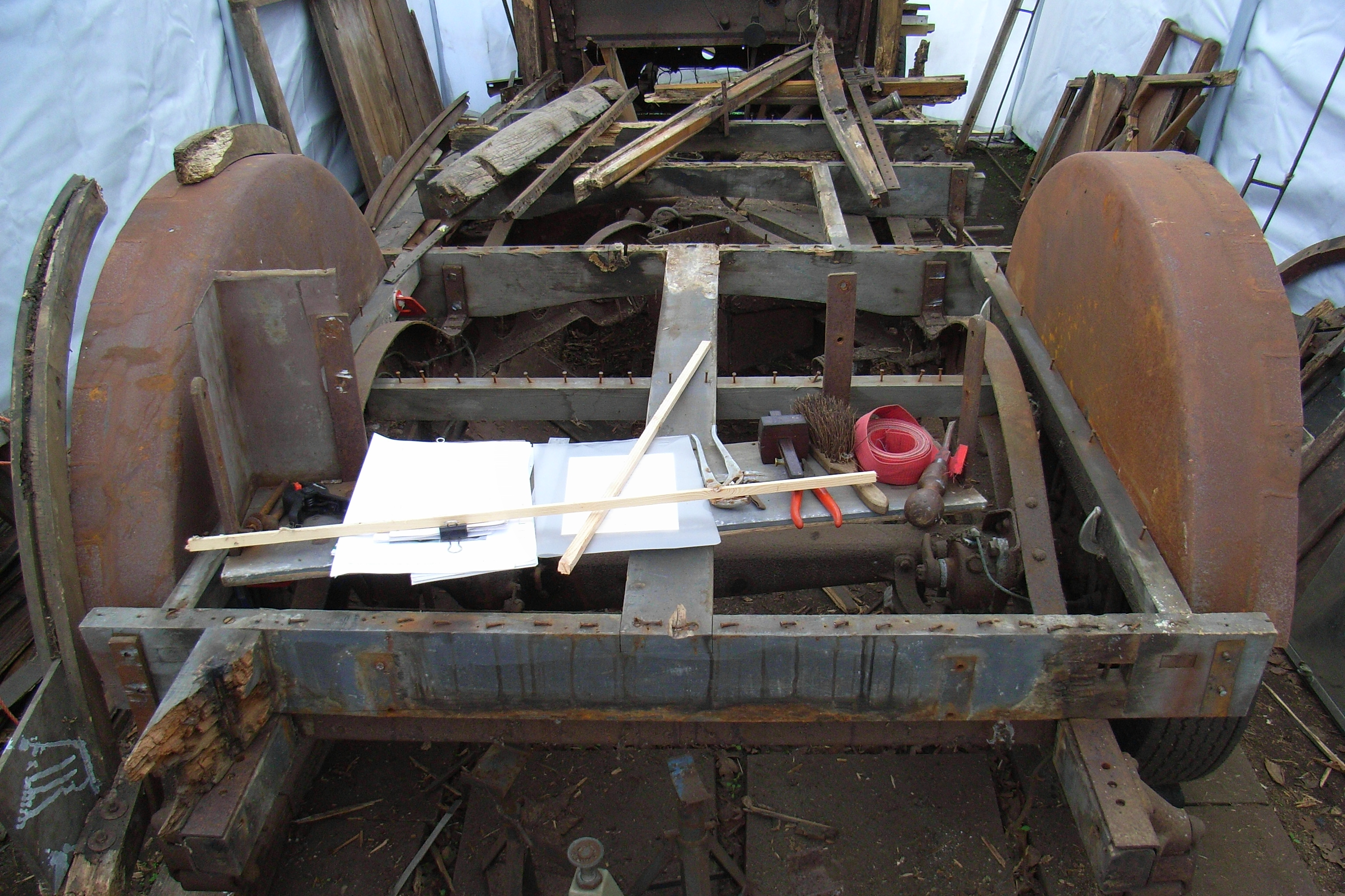 The front seats had disintegrated and new ones are being made just now from paper patterns.