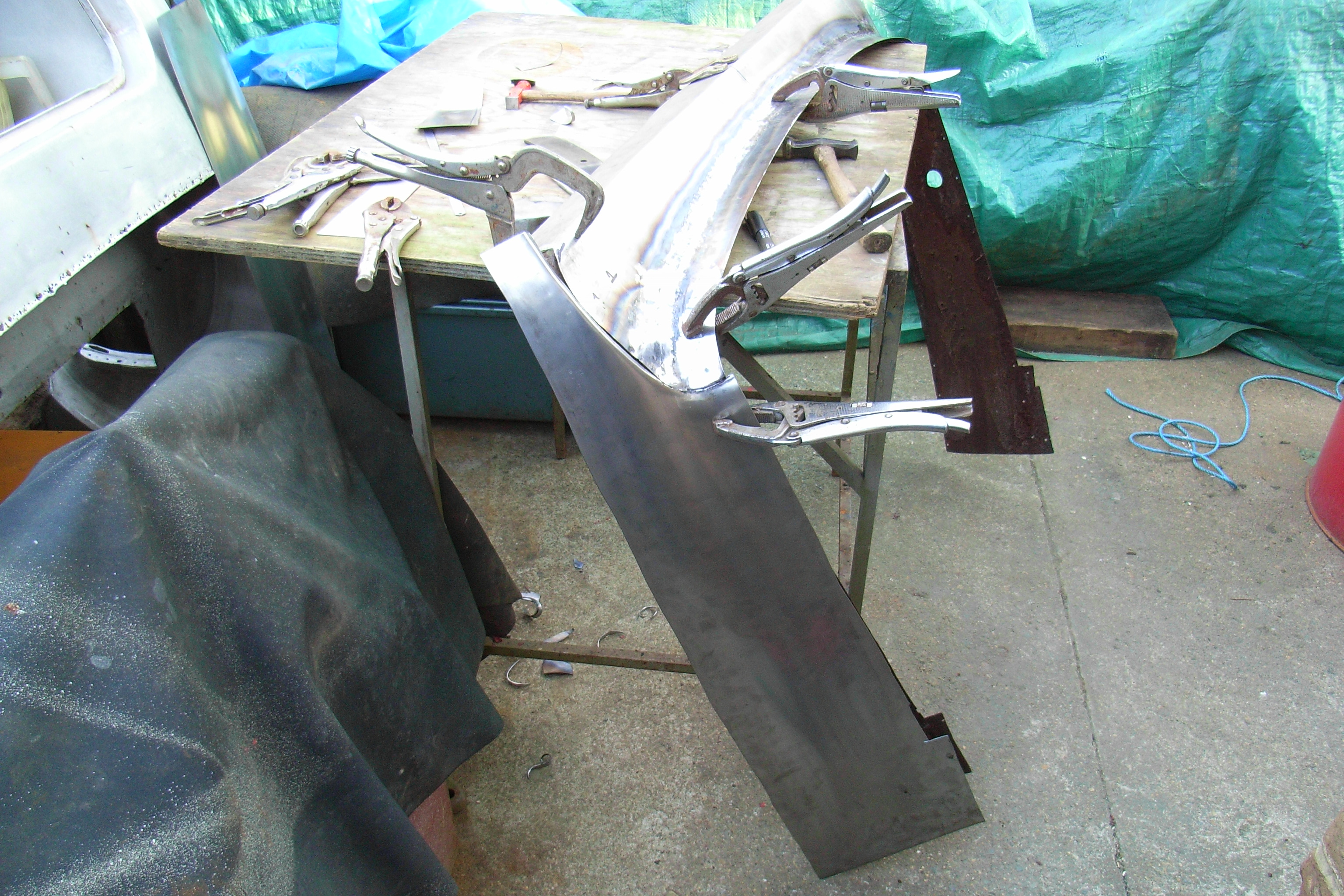 The rear wings were basically scrap so routine is to fabricate and weld on a new front and back, then cut off the side and make a new one and weld that in. That way you keep the shape, size and profile.