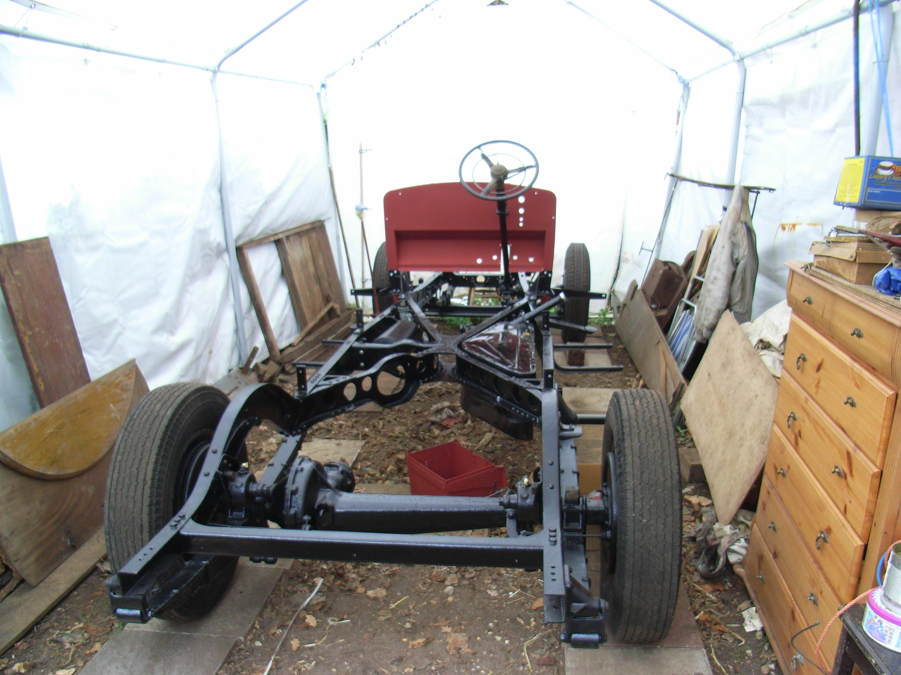 The chassis and running gear where in a bad way. It was sent to the place where i used to work and they welded in a new chassis member on the RHS from the firewall to the front spring hanger.