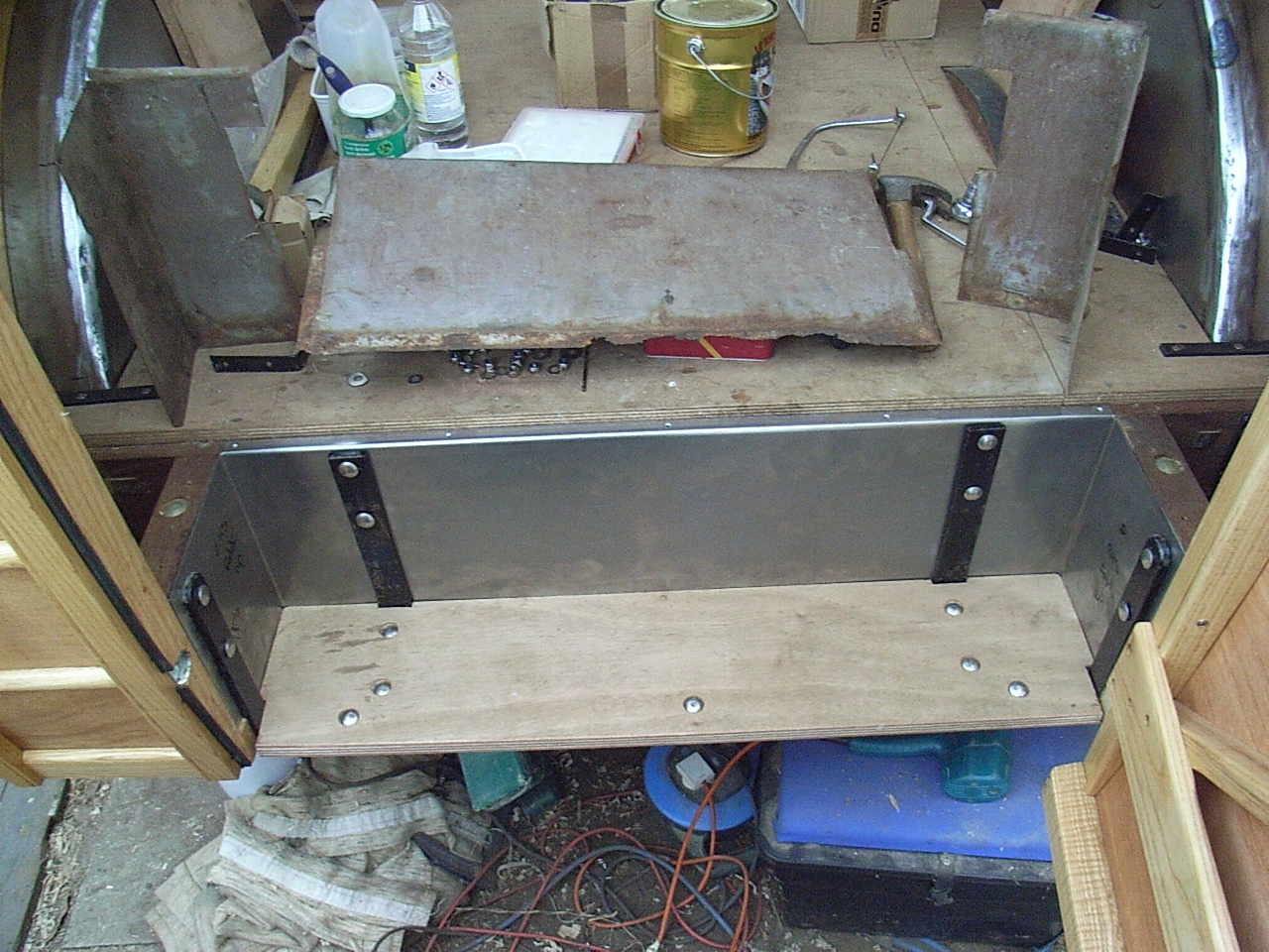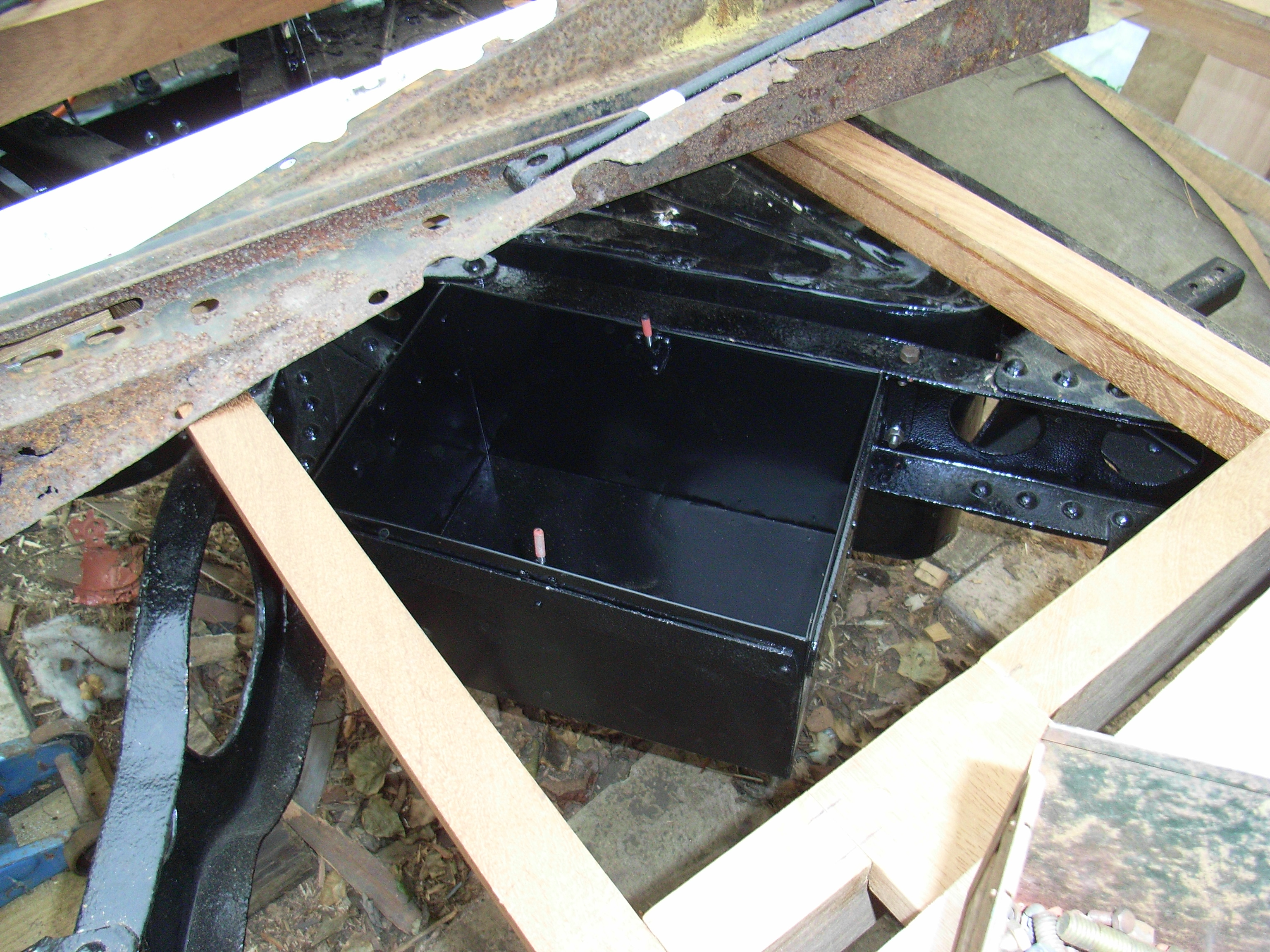 The bottom of the battery box was missing so made up a new one and rivetted the holding brackets back on.
