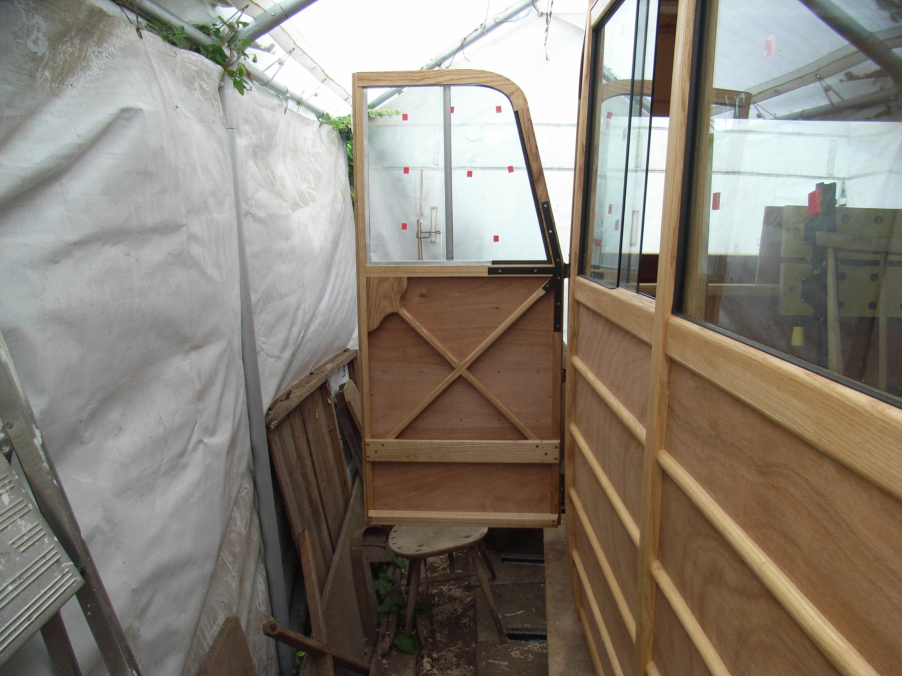 The old firewall fitted the chassis and the woodwork and the new scuttle so the new wood must fit the new firewall and the scuttle etc.
