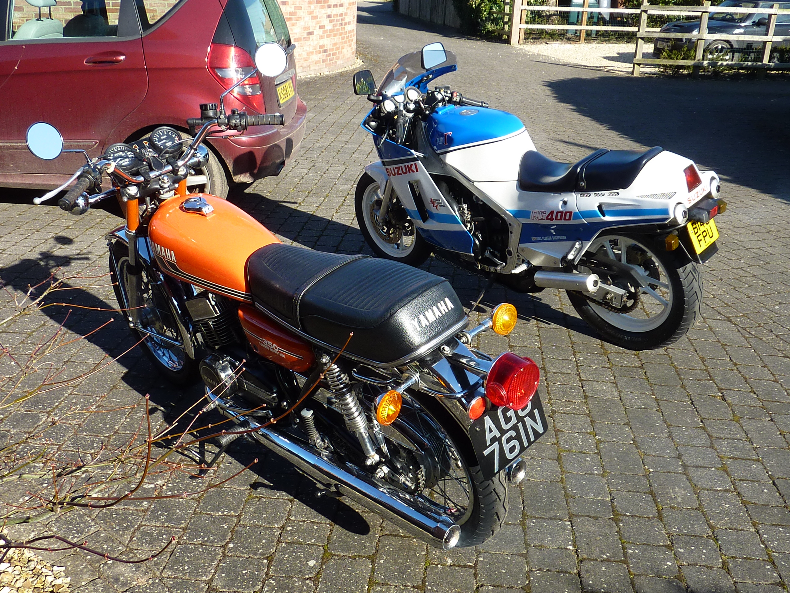 Seems to have been bloody cold for so long and have hardly used the bikes, so wheeled the "Tidlers" out this morning to pollute the village. Not run them for ages, both struck up fist prod of the kick start, quick warm up and when they had cleared their throats had a bimble down the lane, relishing the balmy 3C heat wave: then back in the garage with a cuppa.