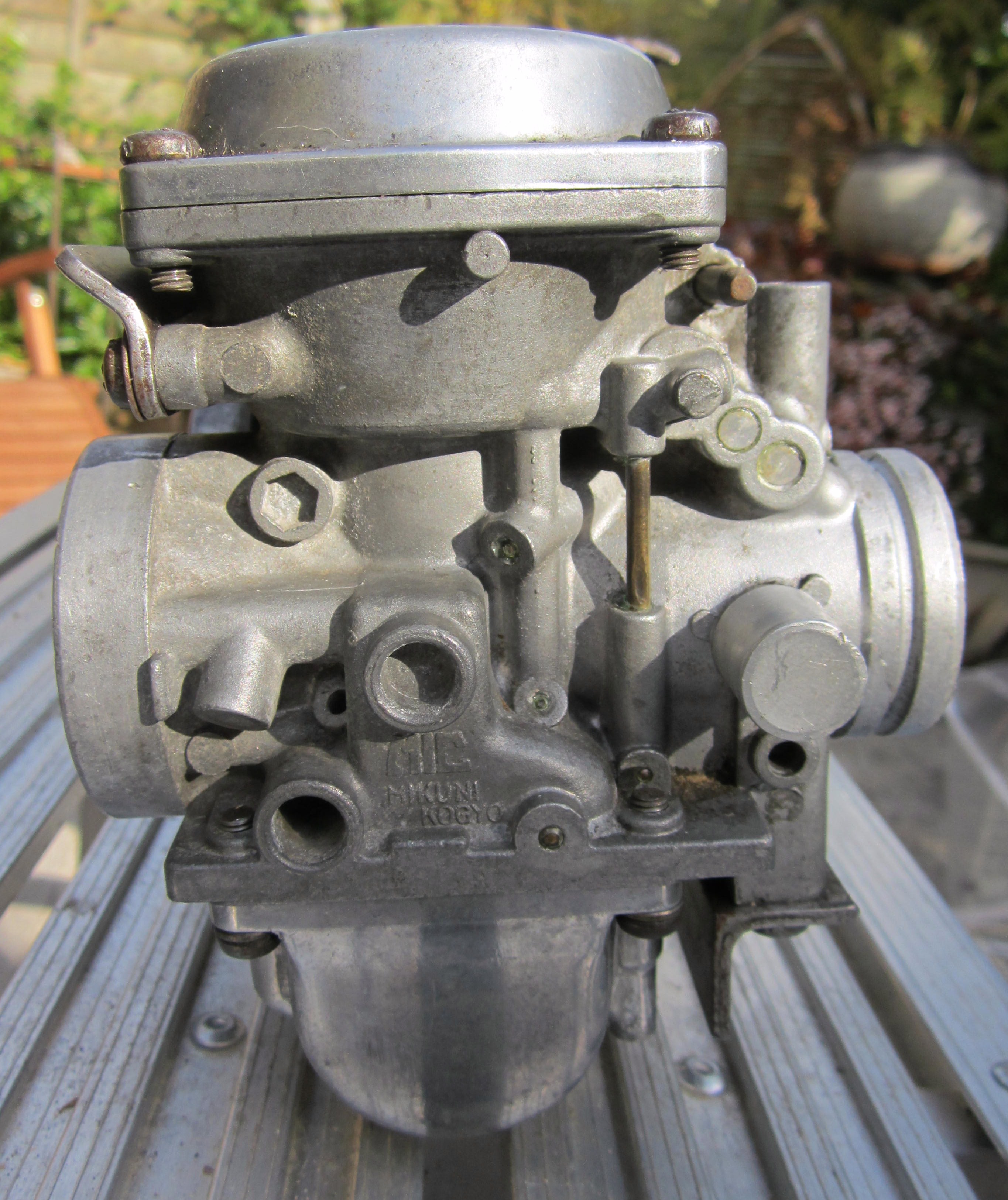 They are 34mm Mikuni cv`s , suzuki spacing , cable choke, theres a capitol E on the float bowl `post`