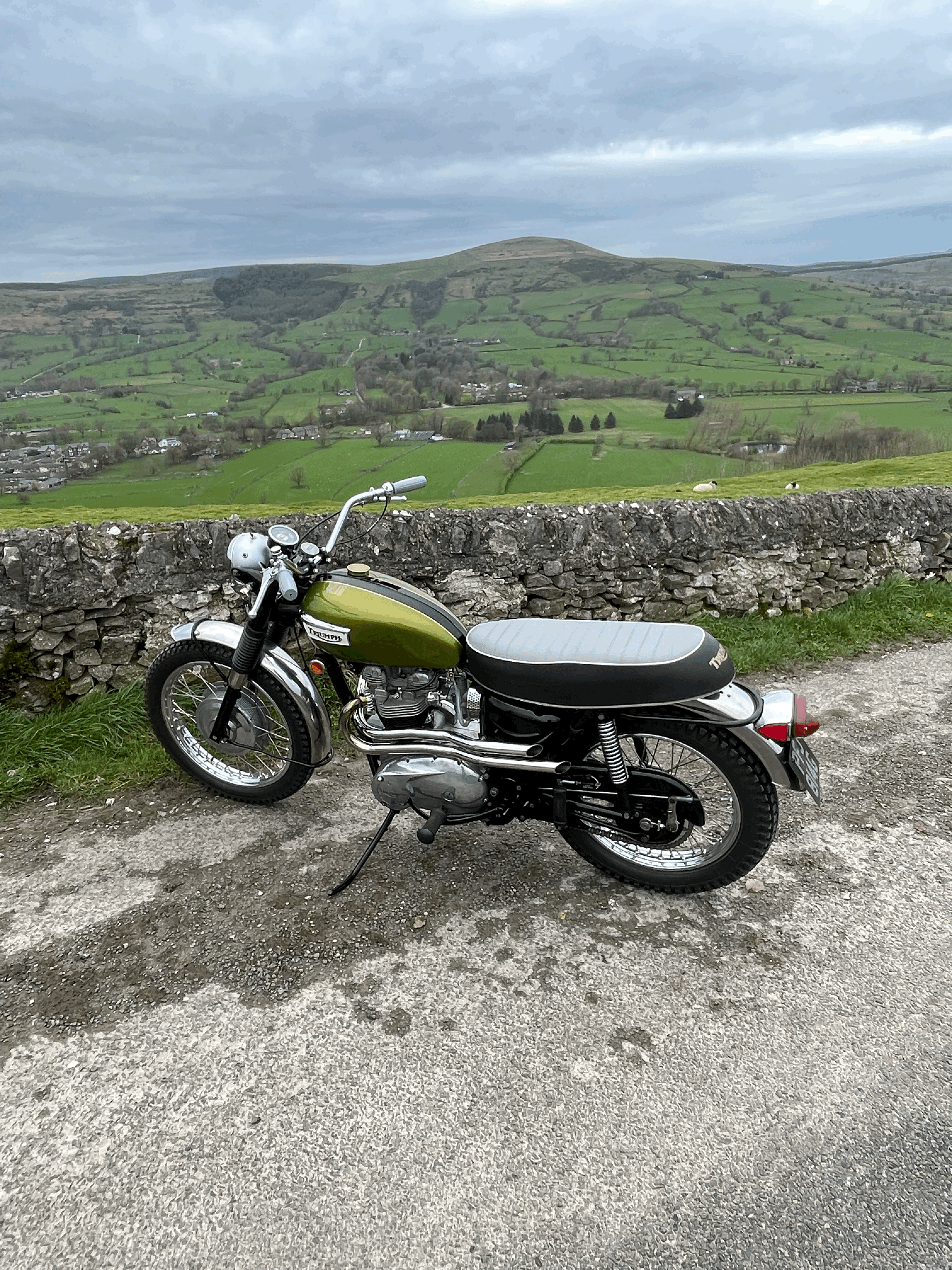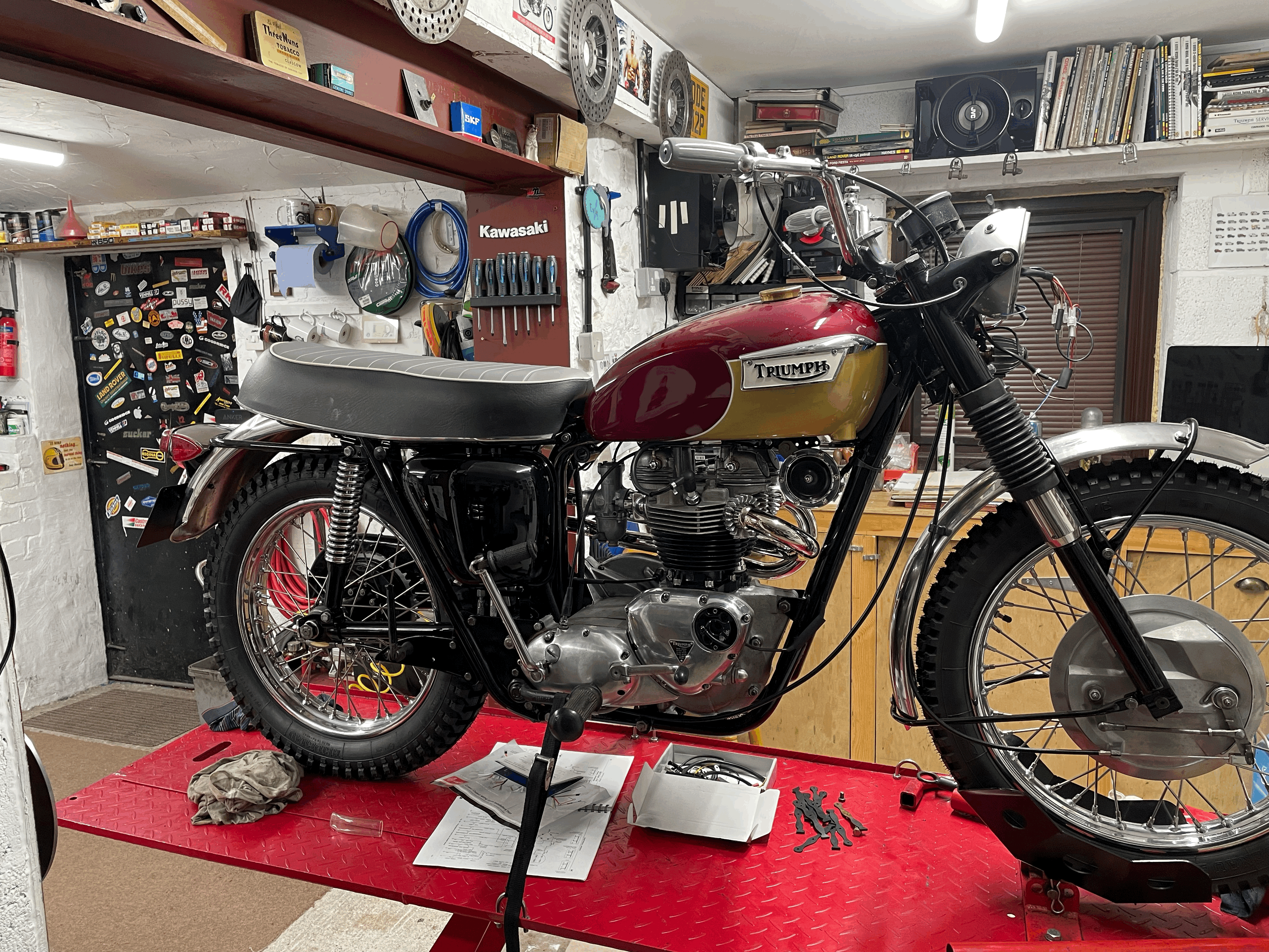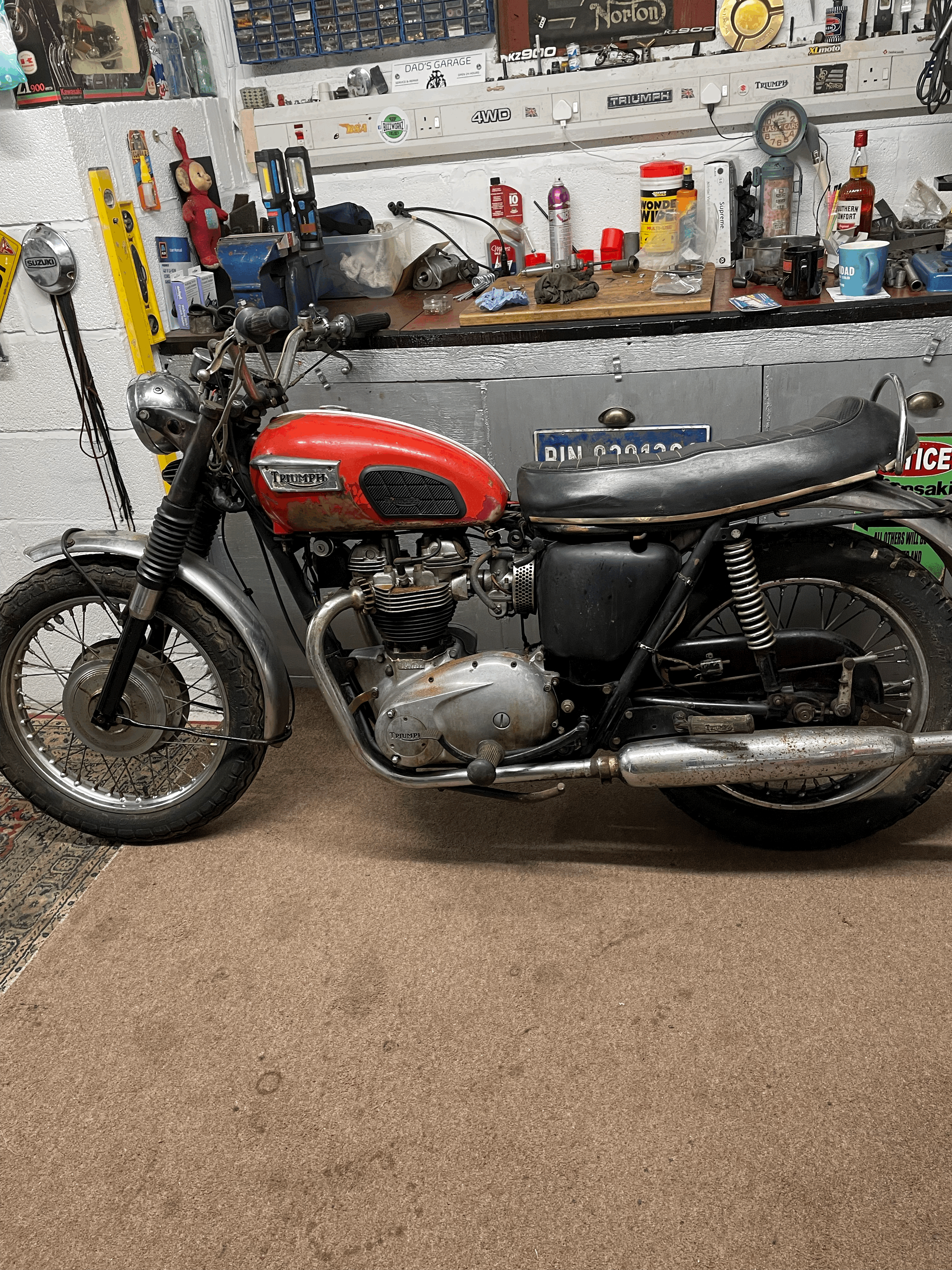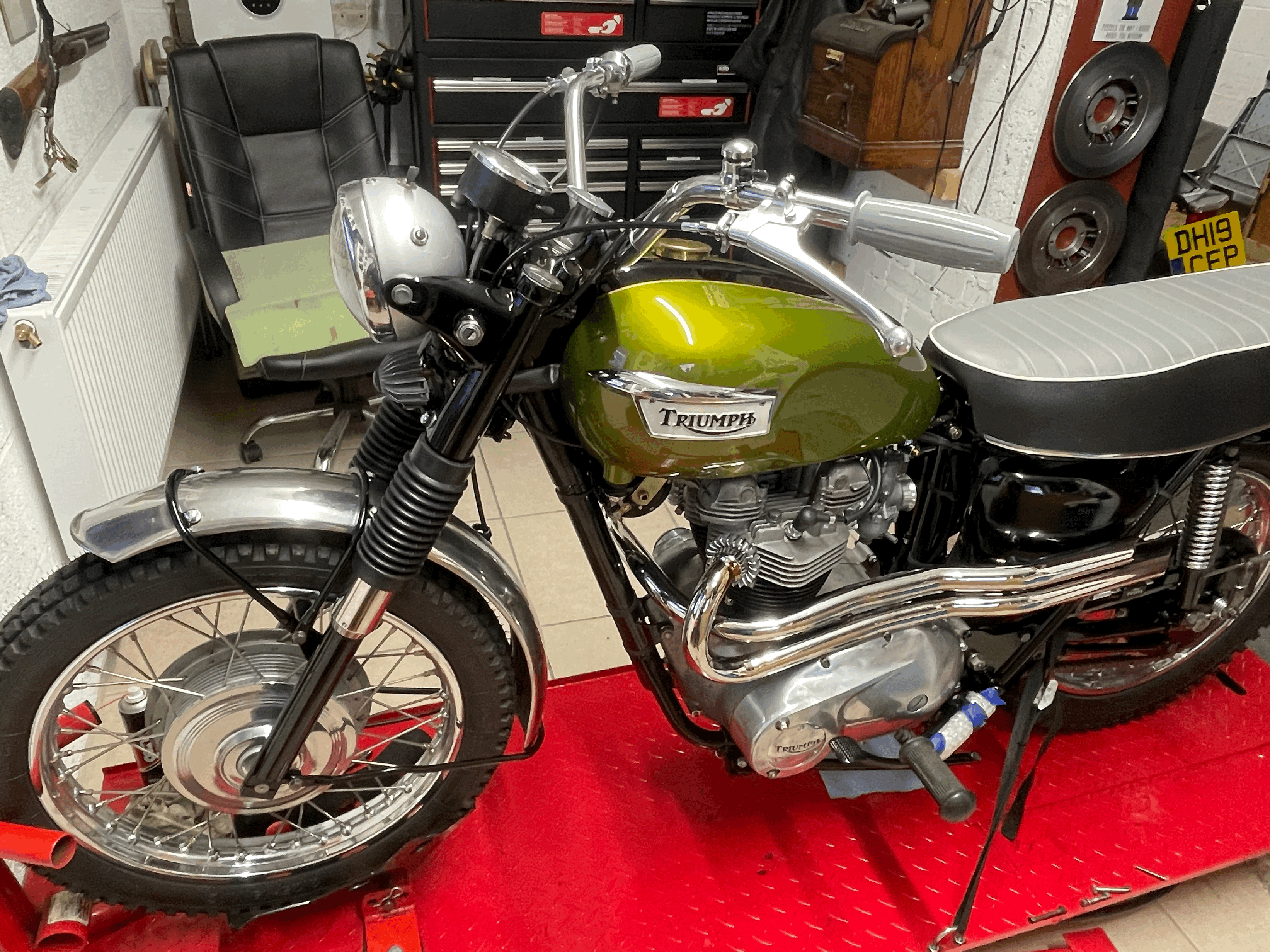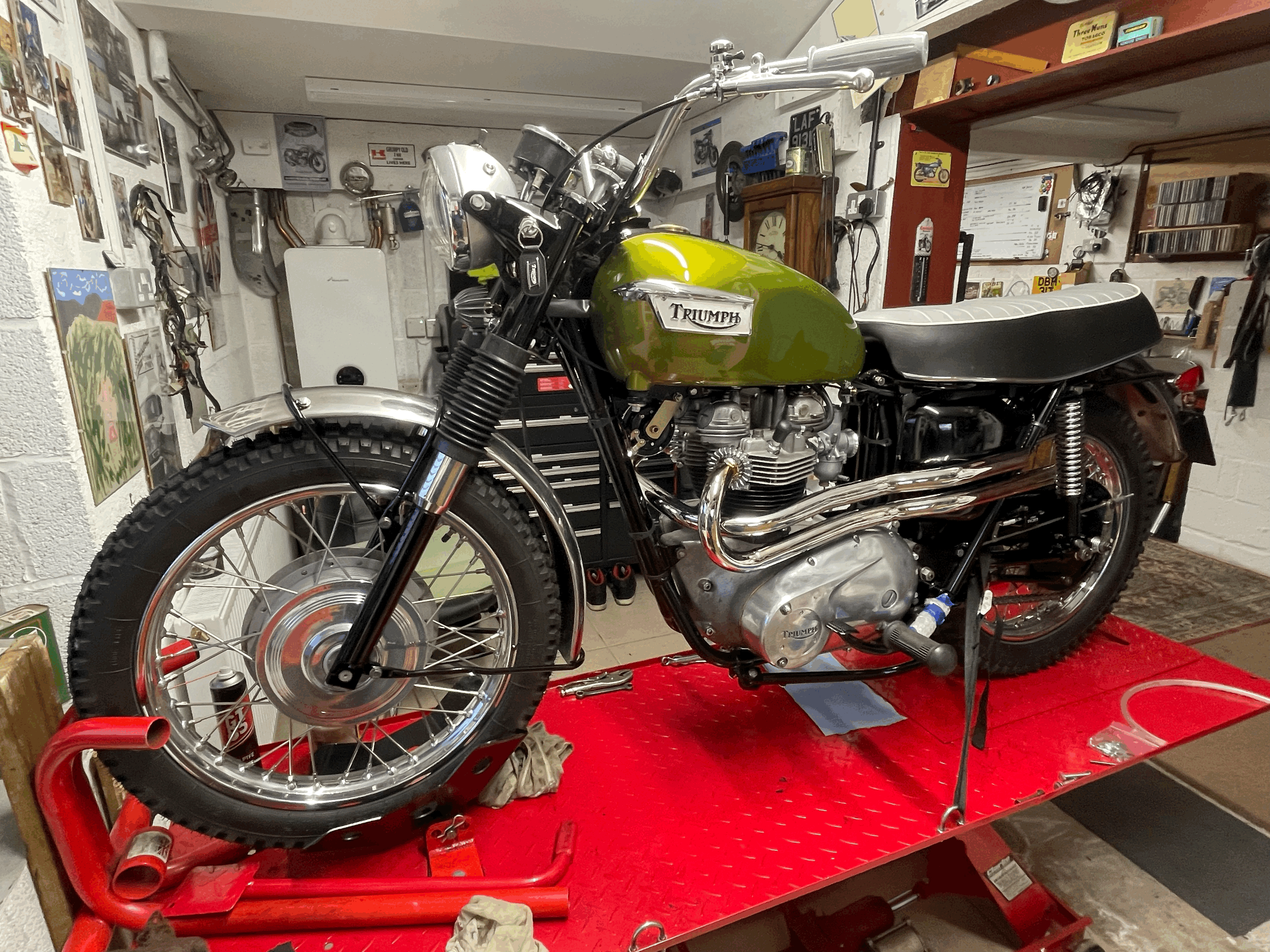 It's a 1969 Triumph TR6C and i do have the correct coloured tank for it but this was closer to hand when i wanted to take picture's.