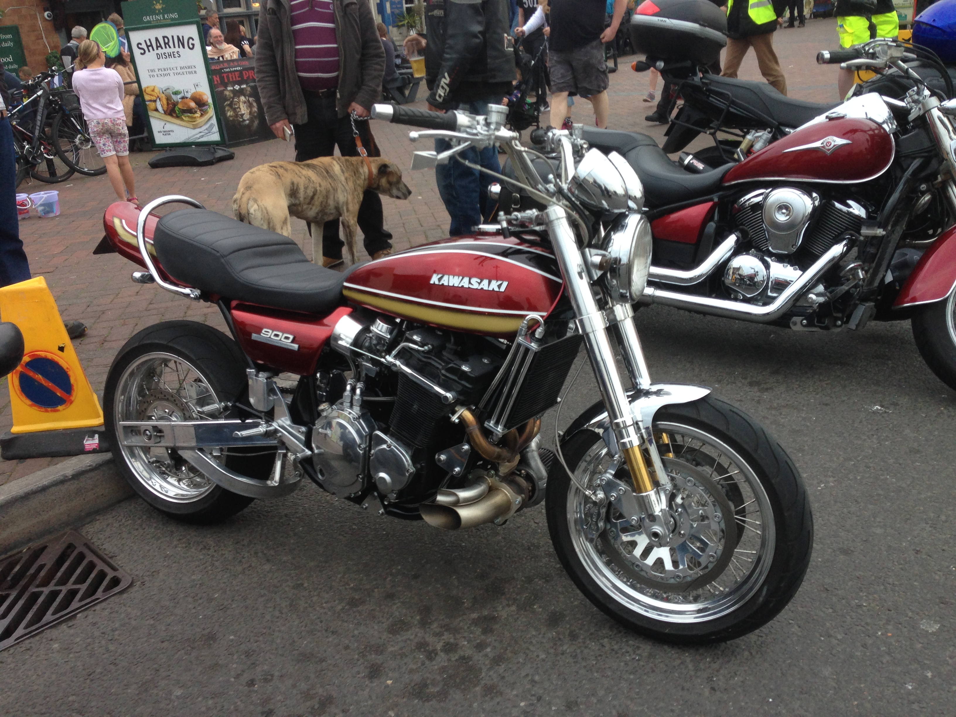 Beautifully executed but frankly... Needs lower /drag bars and a KAWASAKI engine