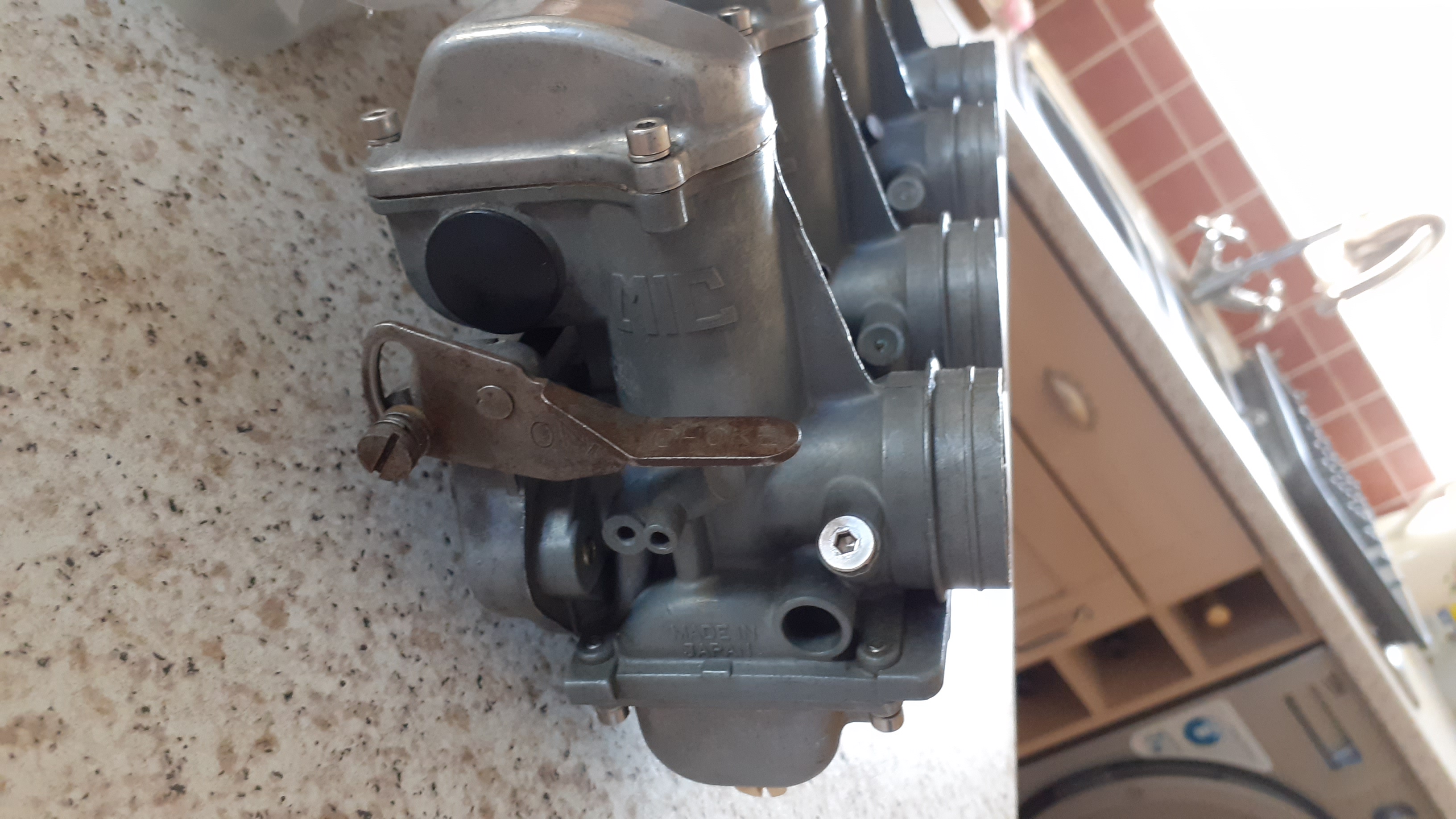 As promised info and pics, 26mm off a Z1000 A2, so have the vacuum stub, with a bung on as mine does not have vac tap, they are the ones that came with my bike and were gummed up and had a bad repair to number one carb, what must of happened is one of the sealing balls on number one must of come out and came to me with a badly fitted grub screw and epoxy which was leaking, i removed this and cut a 5mm thread and have put a stainless countersunk screw in there sealed with ptfe tape, been fine since, they have 107.5 mains, 20 pilots, 5cn7-3 needles, pilot screws 1 and 1/4 turns out, i made brass drain screws for them, stainless allen screws on bowls and tops float levels were set wet using correct tool, then synchronized on the bench and then on the bike, i now have a set of pumpers on my bike, as these may be going on a 1075 i can change the mains for a larger size, i have 112.5, 117.5 or 122.5 if desired. they have worked fine all the time on the bike, i changed them just before lock down, i have drained them, removed the bowls and hung them up for a couple of weeks so they did not varnish up, these will be plug and play with either minor jetting changes and vac balancing. £250. posted