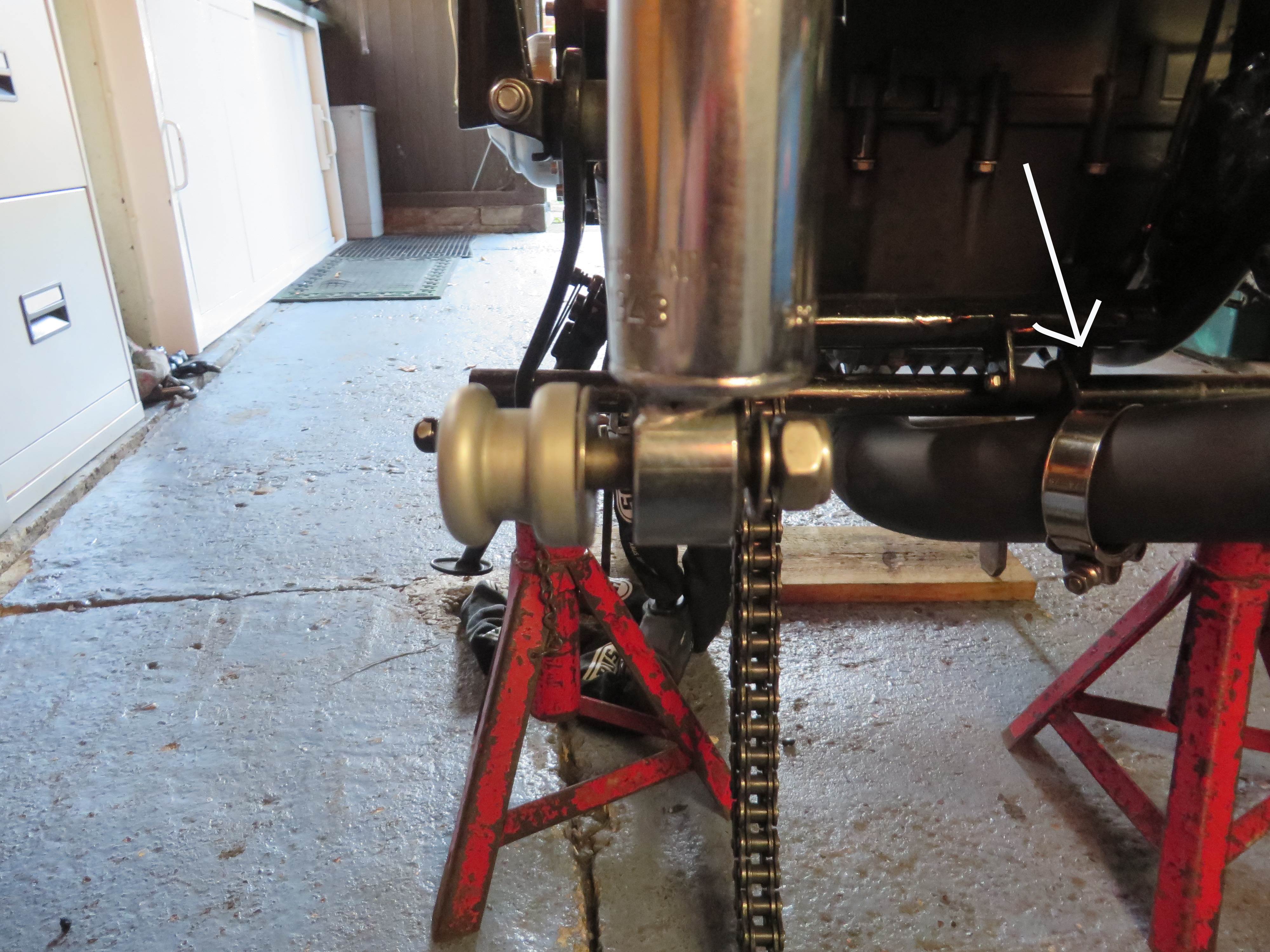 OK, so having looked under the bike I can see the spigots now (presumably held the original exhaust in place?). My Delkevic doesn't leave enough clearance for a one inch tube, so I've ordered some flat steel bar 50mm x 10mm which should be thin enough to squeeze through and sit nicely on my axle stands.
