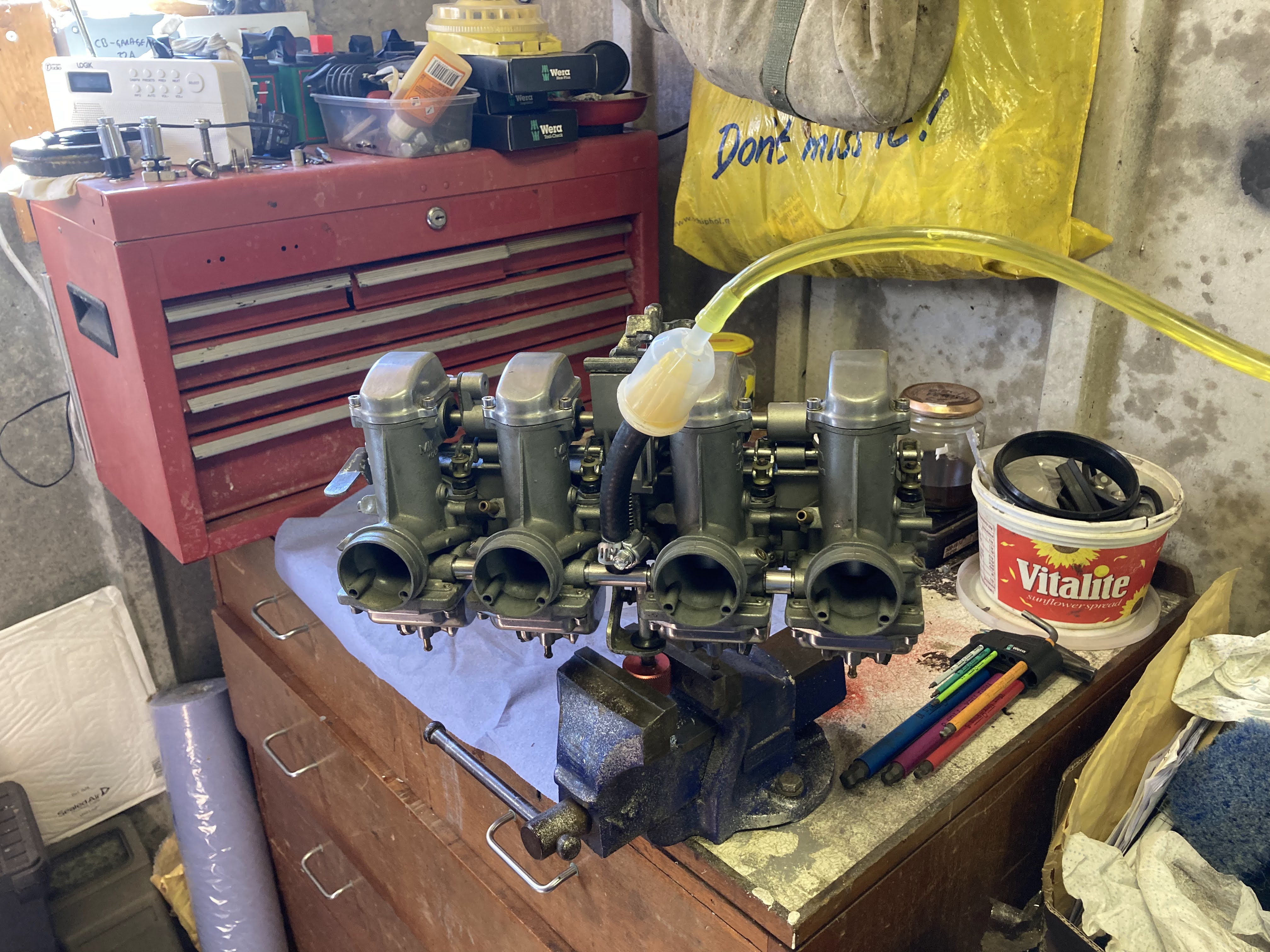 I'm going to build a jig to hold my bank of MKII carbs whilst off the bike for setting service fuel levels etc.
