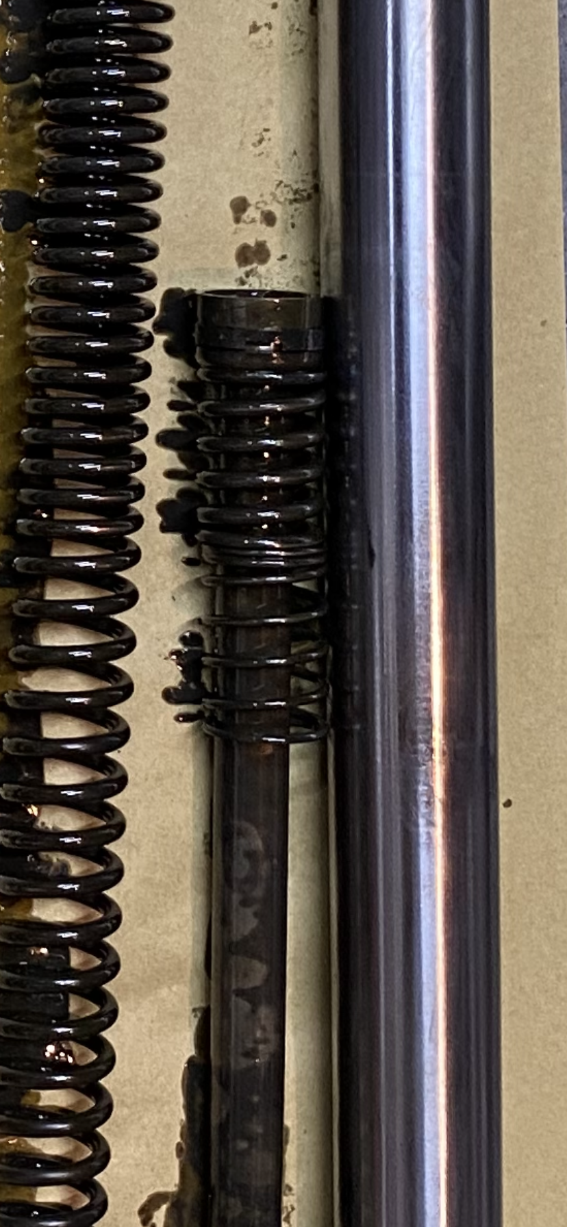 The first thing is my springs are progressive which is not mentioned in the manual. They were different ways up in each fork leg !
