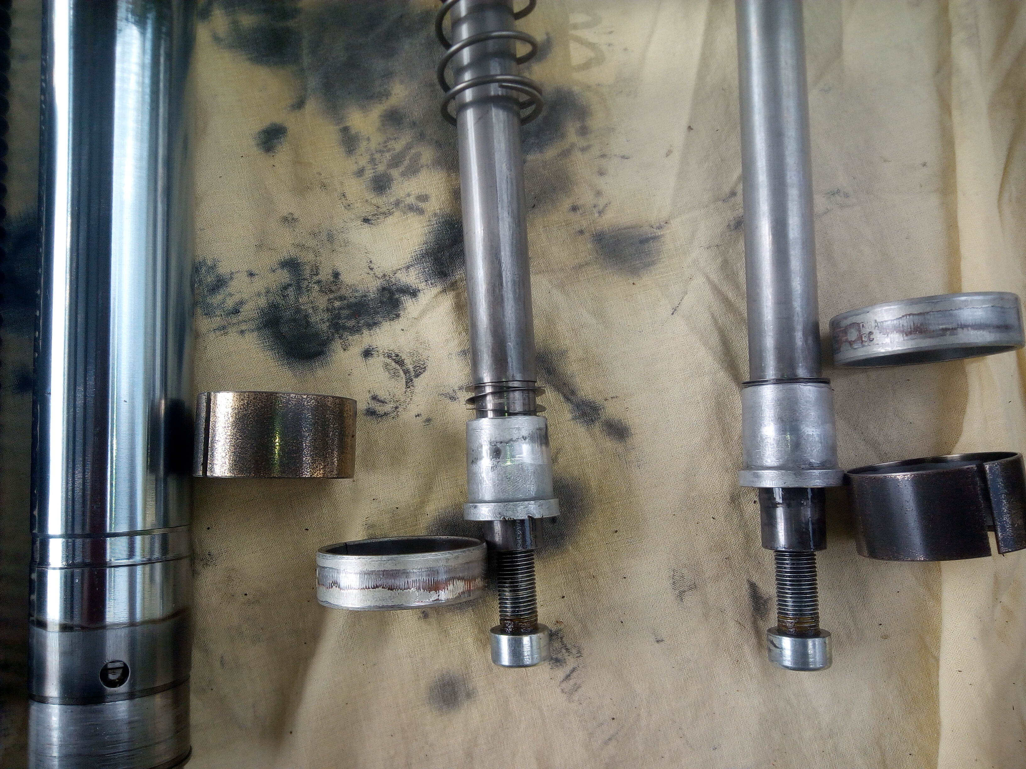 The bushes have a cut down the length of them (see pic 1). Guessing Phillipe means the slot must be placed to the left or right, not fore/aft to minimise wear. The seals being fitted after assembly requires a special tool, a home spun tool (a tube of the correct diameters, I have a tufnul one for my TY) or gently tapping it in working slowly round the seal in 10 minute ish (think of a clock) increments, continue for several rotations until the seal is seated. A tube is better and doesn't risk damage to the seal of forks.