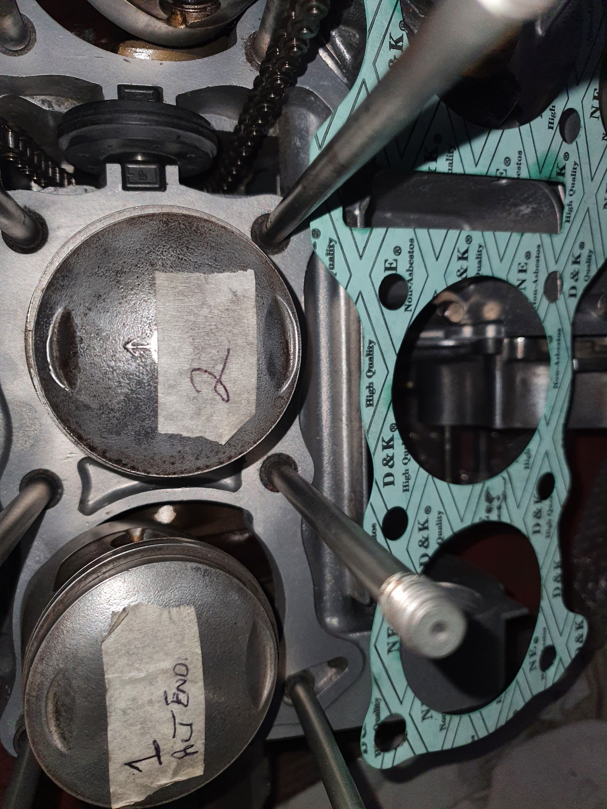 Thanks for reply, Maybe thats what im doing wrong, im trying to do centre 2 at fill height then outer 2. So if i use your method i set all 4 pistons mid way, lower block onto the top of all 4 resting it on them, then tip one slightly enter ring then move across i asdume you do all 4 pistons 1st ring, then all 4 second ring then all 4 last ring lowering block as you go. When i did the Suzuki tripple which being a 2 stroke only had 2 rings, i did each piston 1 at a time, lowering the block each time, after you had 1st one in it supported the weight.