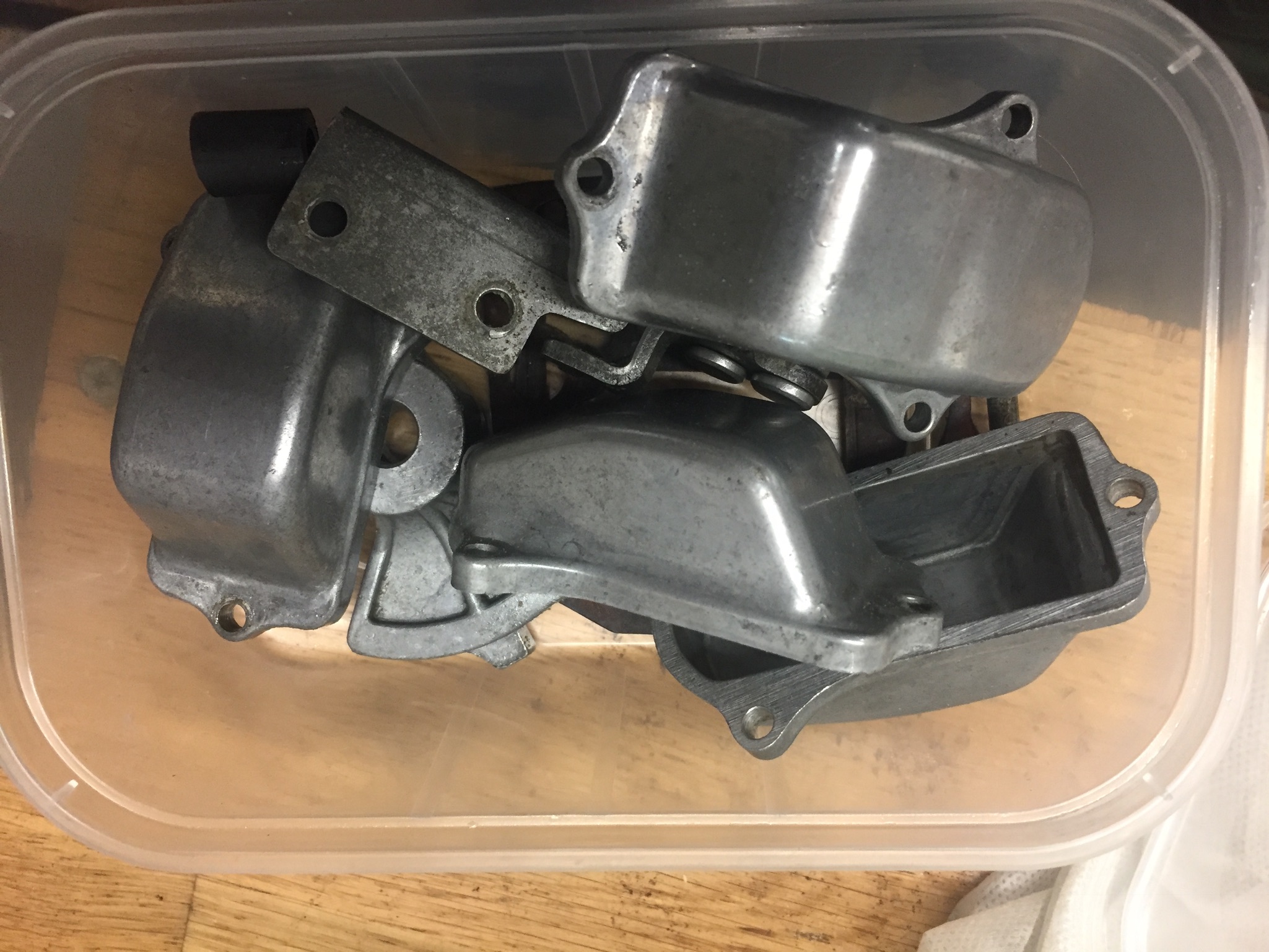 Just about to start mine - I had two sets of carbs with the box of bits formally known as a Z1000. A 26mm set and a 28mm set. I stripped the 26mm set last night and soaked them today in a Rozone cleaning bath. I just wanted to get the grease and grime off prior to going in my Ultra sonic bath. My intention is to plate and polish as much as I can myself. I have a basic homebrew plating bath based on the Gateros set with some mods.