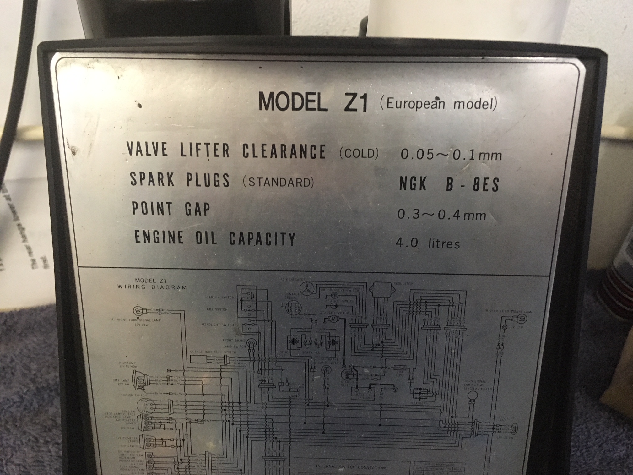 My Uk spec z1b has folding front footrests, single headlamp rim with a Stanley headlamp lens, grab rail with indicator mounts,long rear guard no holes, frosted rear indicator lens, chrome blanks on front forks, Nippondenso grey shaft plug caps, Seat strap,UK/Euro steering lock.plastic body master cylinder, plain rear shocks.