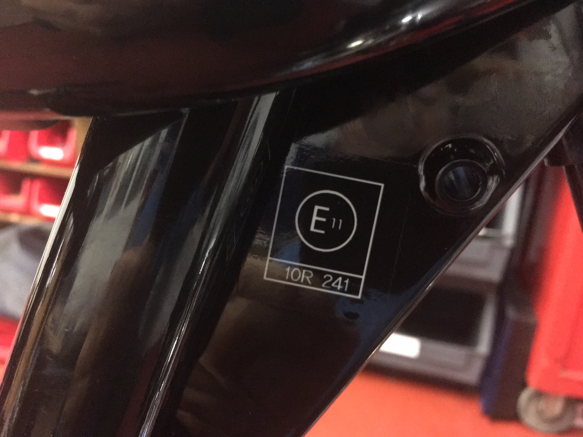 The headstock frame decal (silver) was not used but all had to carry the E11 10R 241 interference decal.