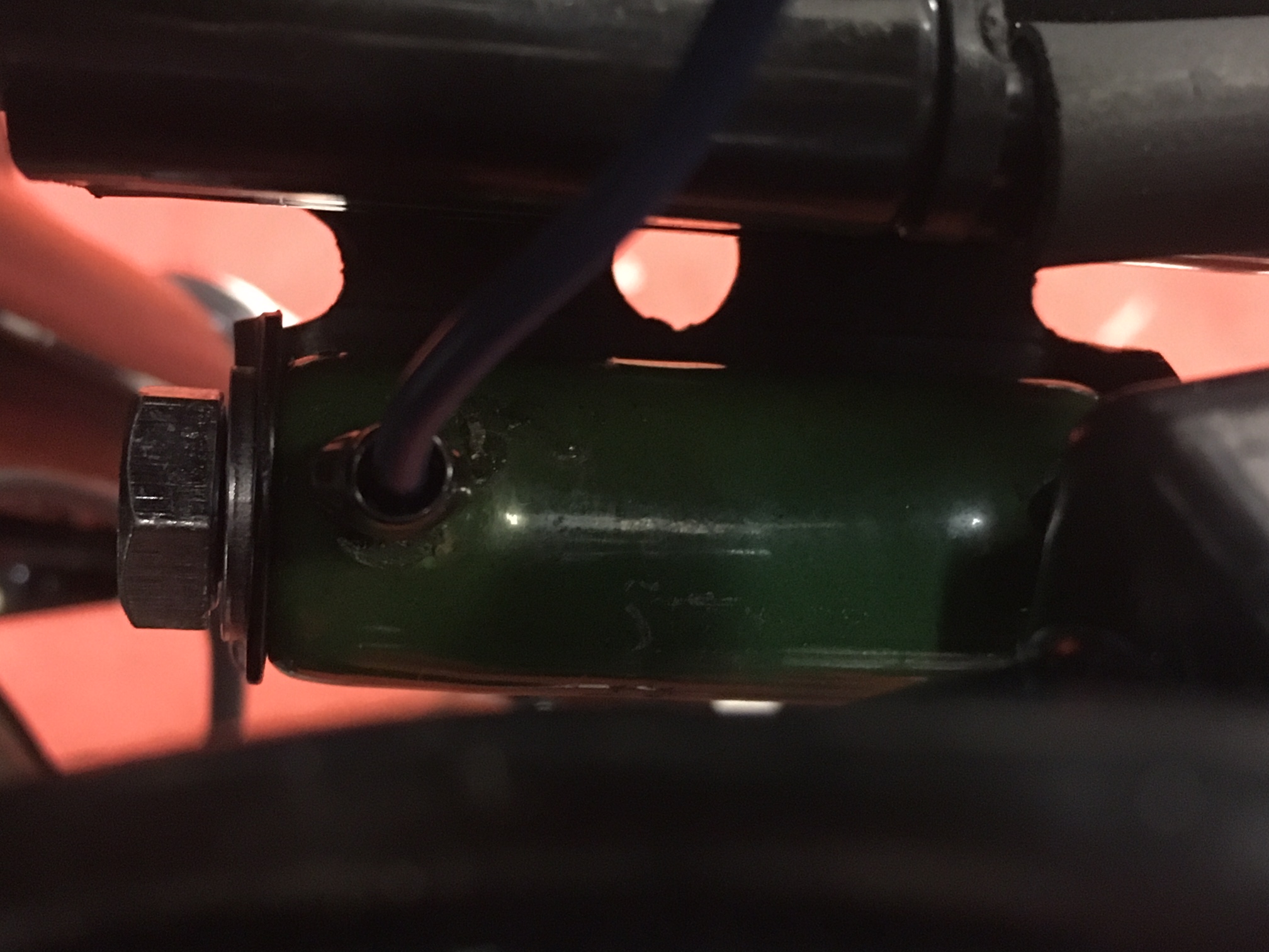 A resistor was bolted to a bracket under the RH coil to stop the bulb blowing.