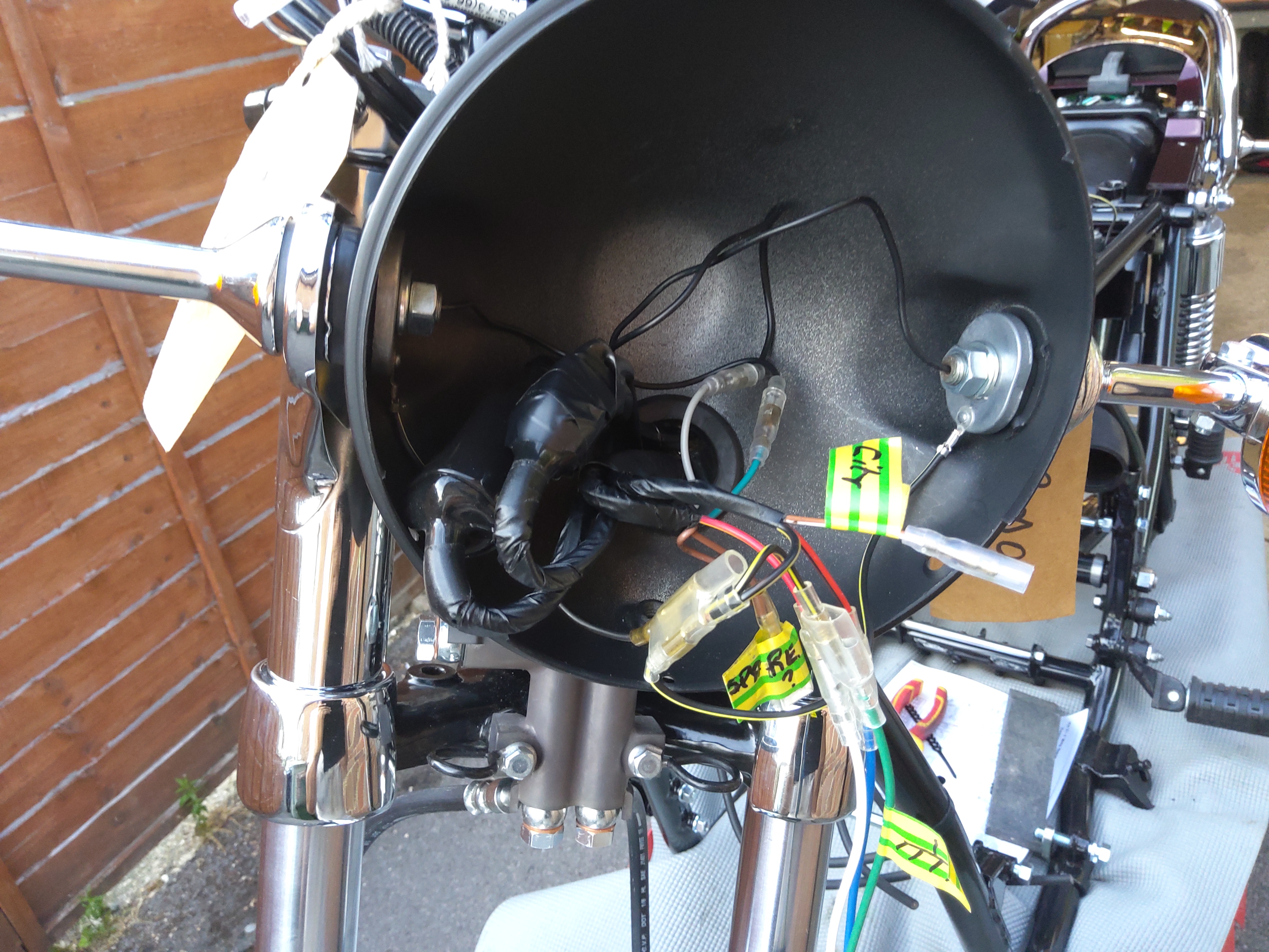 Many thanks to all. As you can now see from pic I managed to get the whole shenanigan together (technical term there). I can't for the life of me remember whether the front harness block connectors join to the main loom connectors inside the headlamp shell so I've done it anyway. Will find out when the wiring I've ordered arrived so I can make up the tails for the City light. Time will tell