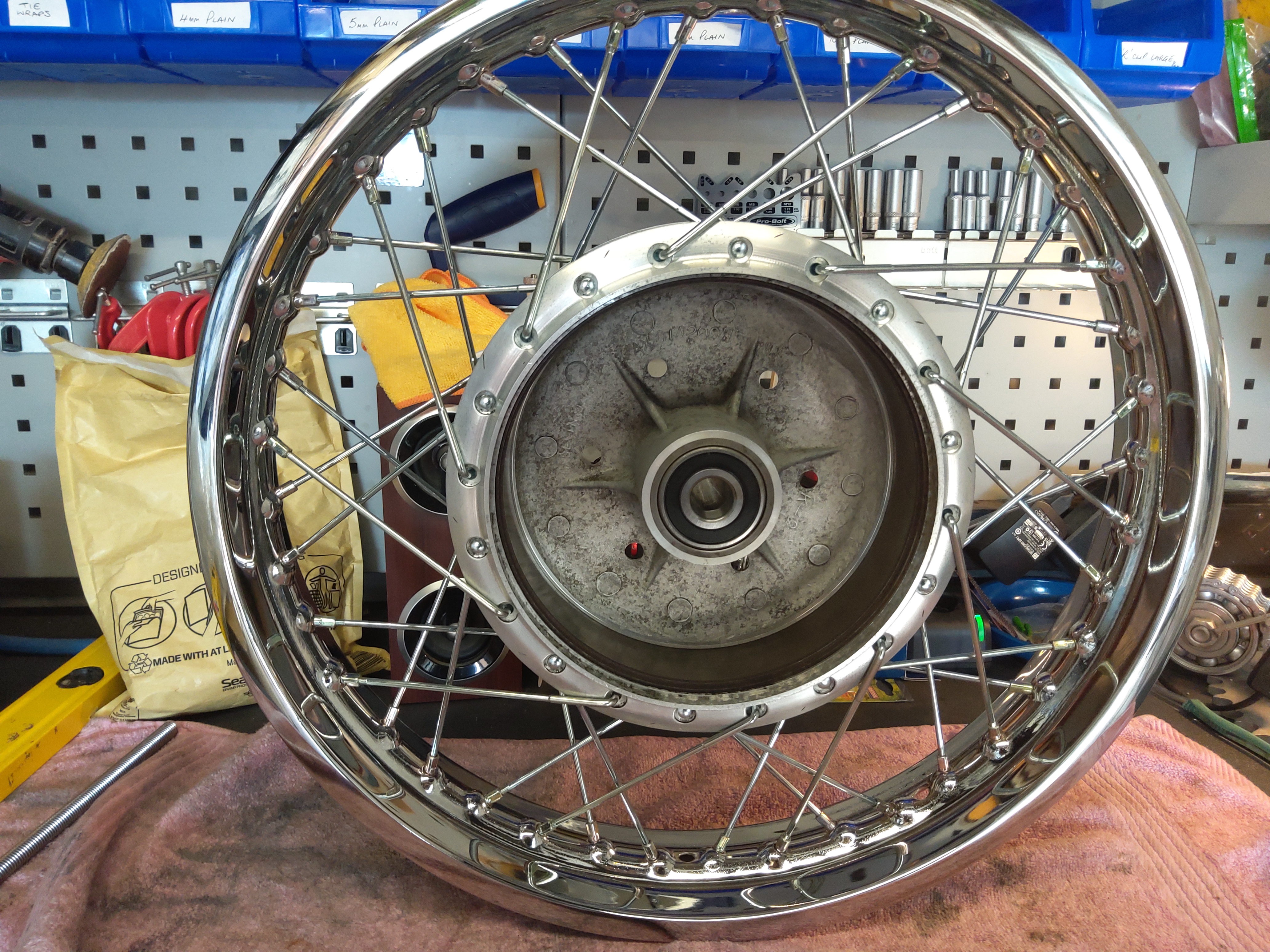 Thanks for the advice Philippe. These are the original fitted rims (rear is dated November 1974 , see pic). I bought the bike on 1st May 1975. I can see the two gripper holes as they have a slight flattening which I'm guessing is the bed for a washer. I can't find a schematic anywhere showing the grippers so cannot work out what washers (plain/spring) go on the inside or outside of the rim. Do you have any idea of the set-up for this?
