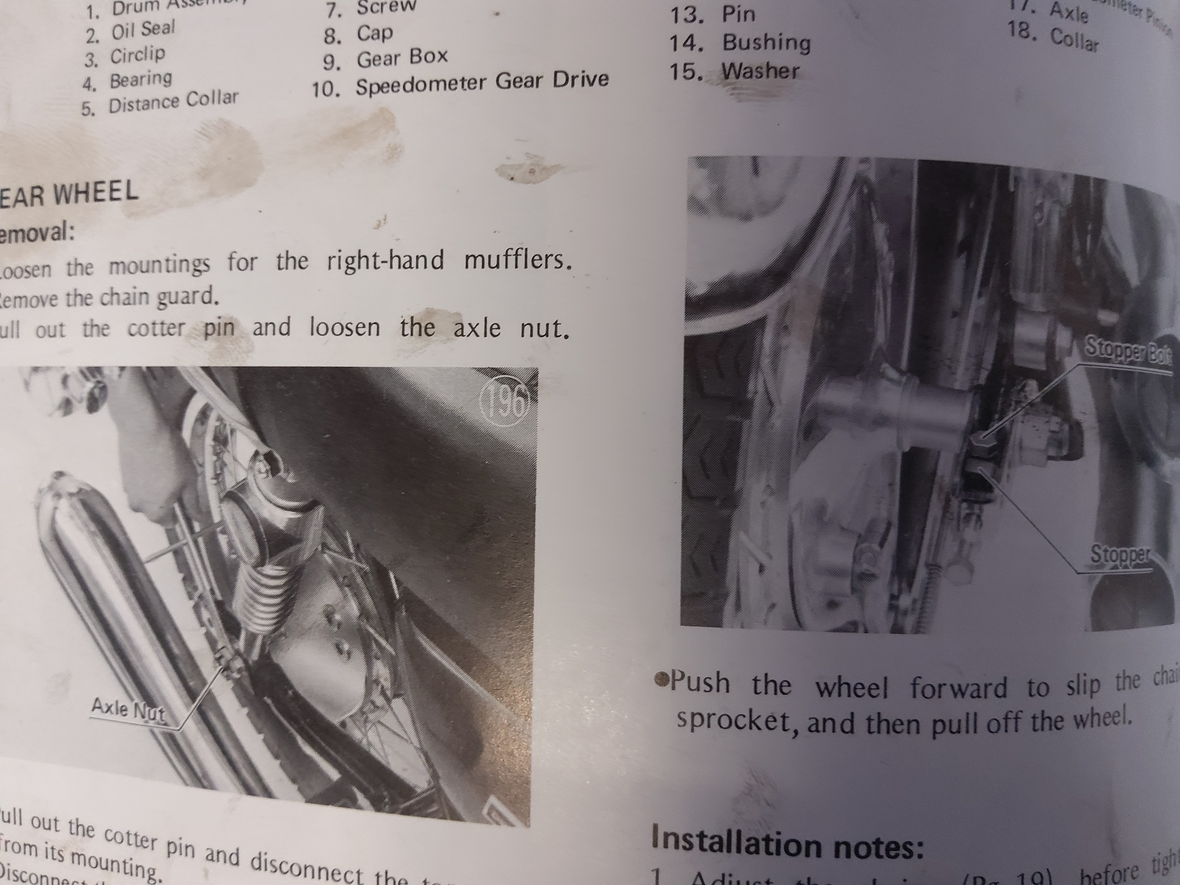 Just about to loose fit the rear wheel on my Z1-B and just checked the workshop manual to ensure correct orientation and found that the photo's and the schematic don't agree! IIRC, and noting that I did strip this bike down 43 years ago so my memory may be playing tricks, the castle nut was on the sprocket side. I've attached the relevant pics from the manual. This is the official Kawasaki Shop Manual, Revision 3, July 1974. Can someone confirm which side the castle nut goes please?