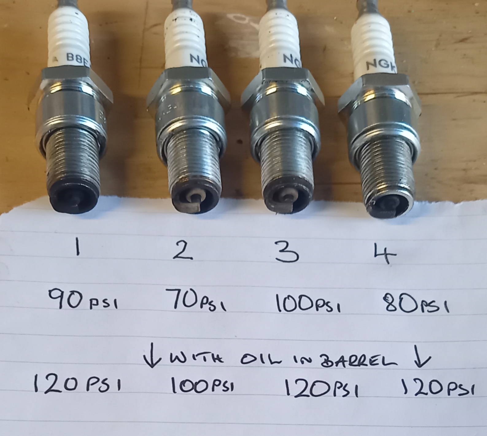 Just done a compression check (cold) and then one with a spoon of oil in the cylinders. Got the following results....