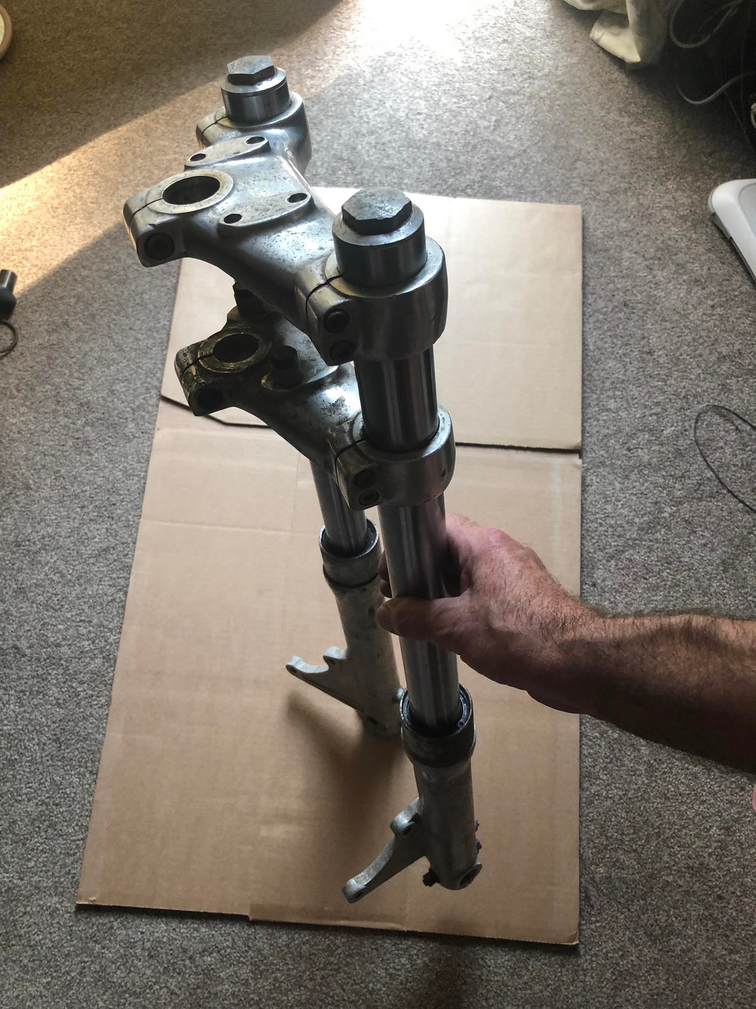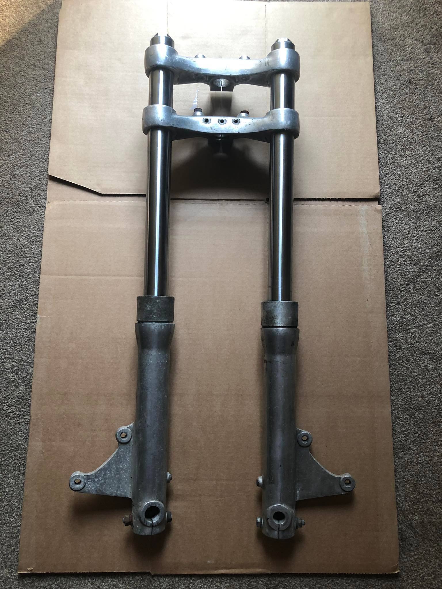 Evening all, had a message off a mate who has acquired a Rickman frame, and what he thinks are 38mm Betor forks. He would like to know distance between centre of axle to top of stantion, his are 711mm. Also distance between centre of axle to top of alloy fork leg not including rubber dust seal, his are 341mm. He's not sure they are correct or whether they have been messed with.