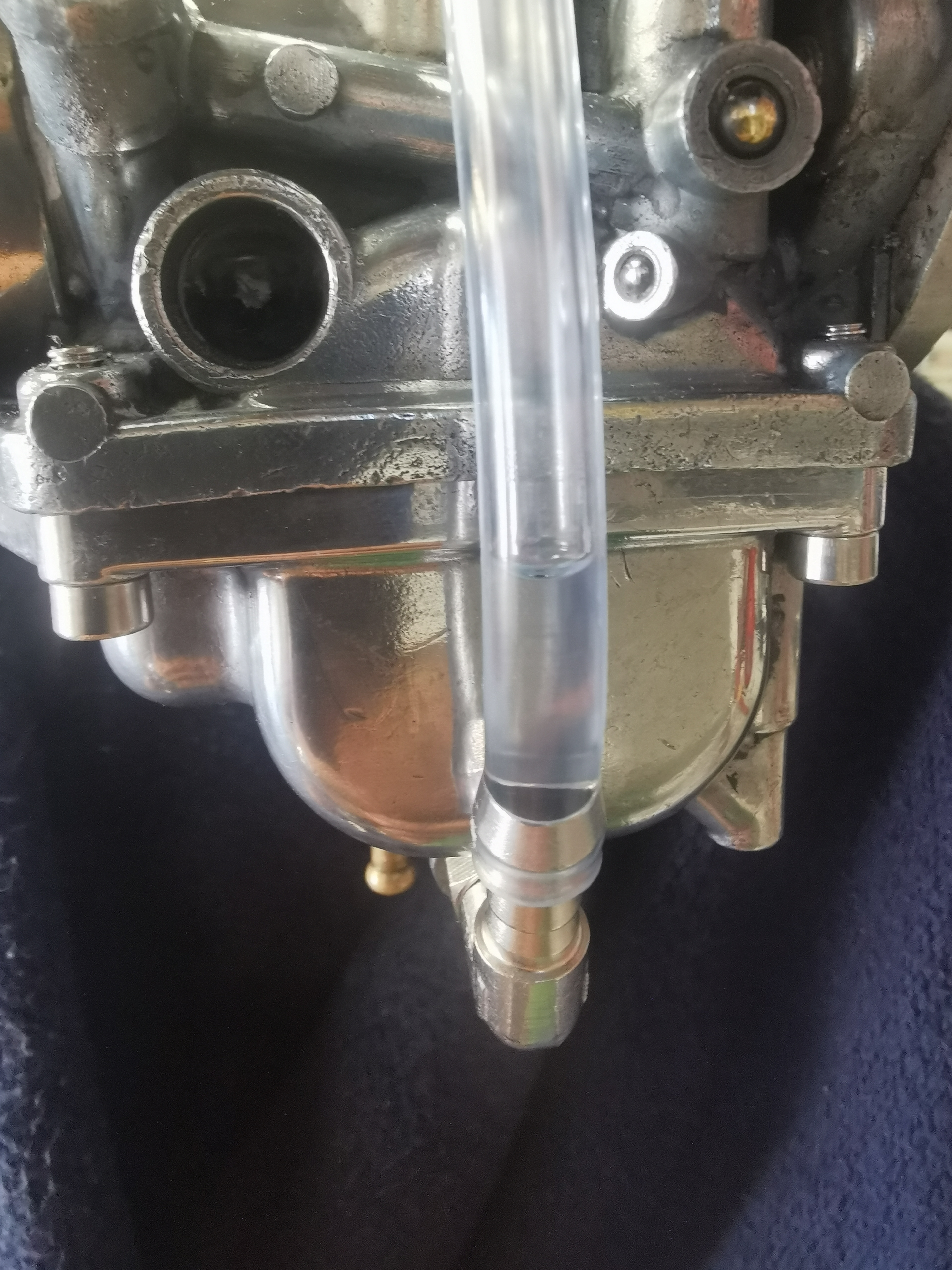 I've sourced a couple of M6 x 0.75 barbed elbow fittings for the drain screw threads and have started on number 4 as that seemed to be the odd one out - according to the manual I've got, the measurement is supposed to be 3mm (+/- 1mm) from the flange face where the float bowl and carb body meet to the top of the fuel level in the tube?