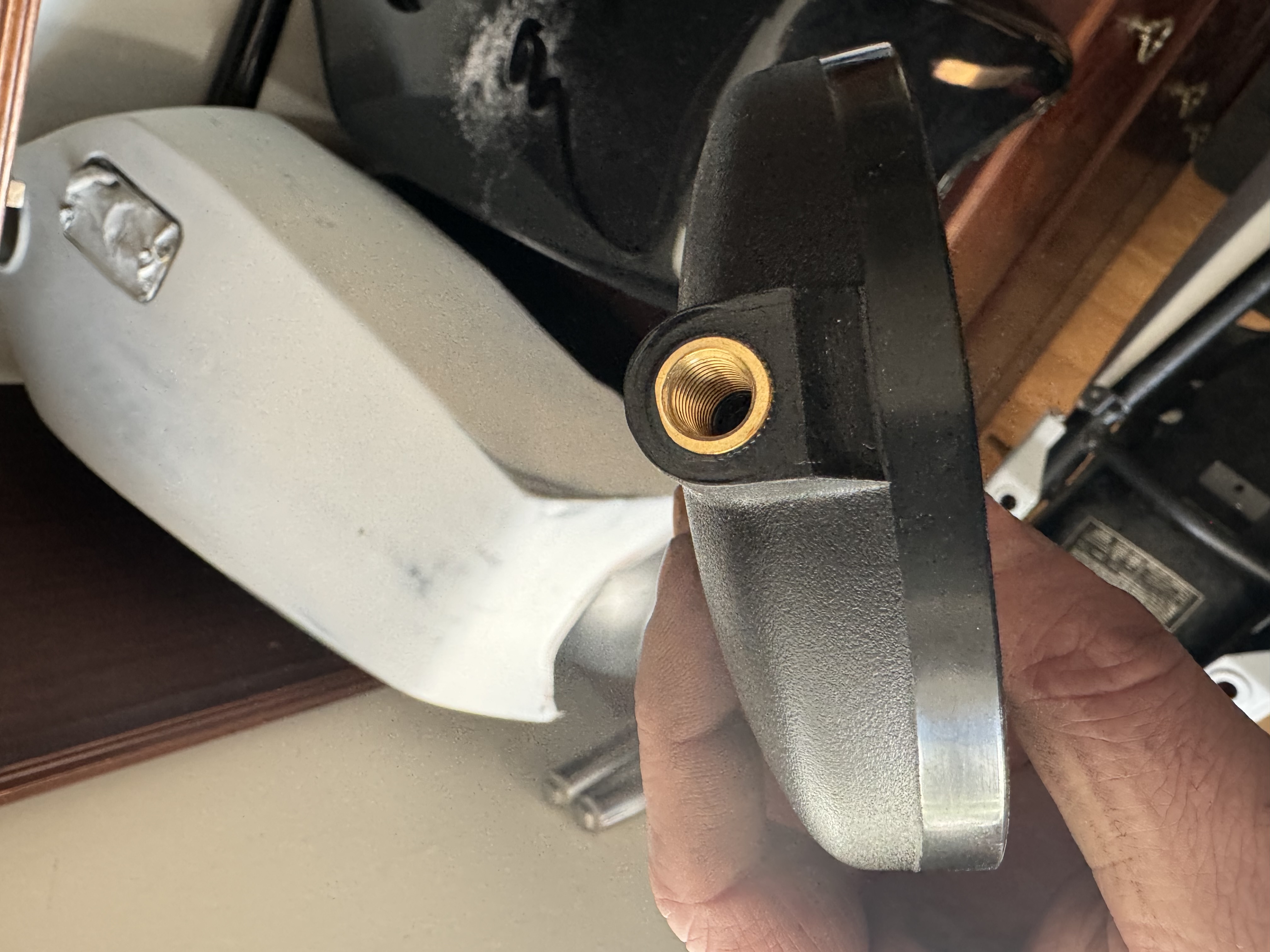 Top one in my hand is an early one, later is missing the brass insert. The lower one is a knock off. Hope this helps Dave. Angus.