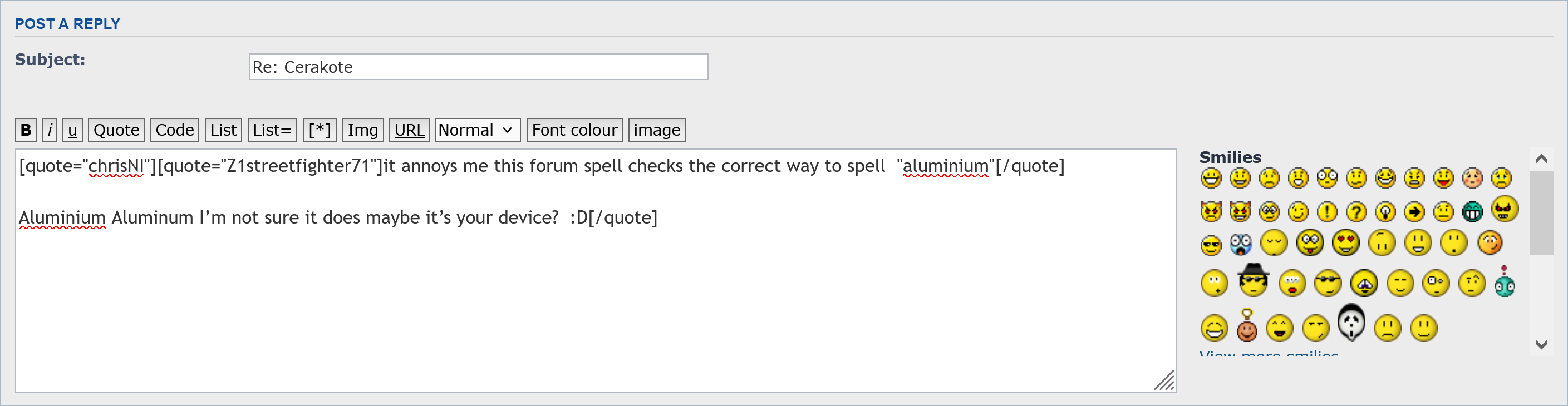 Z1streetfighter71 wrote:it annoys me this forum spell checks the correct way to spell "aluminium"