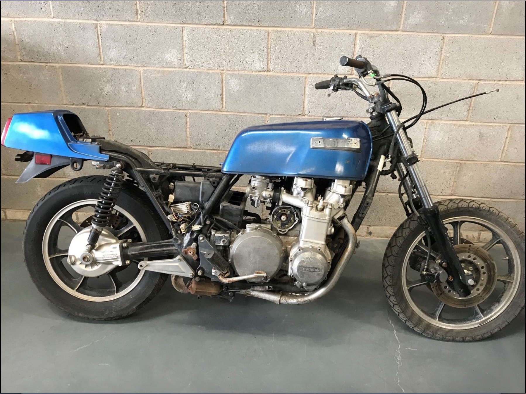 To keep my wife sane (my excuse!) I extended my single garage and rebuilt a KZ1300 wreck. Pic as bought on a drunken late night Ebay foray... (oh sh*t! Its mine!) :shock: