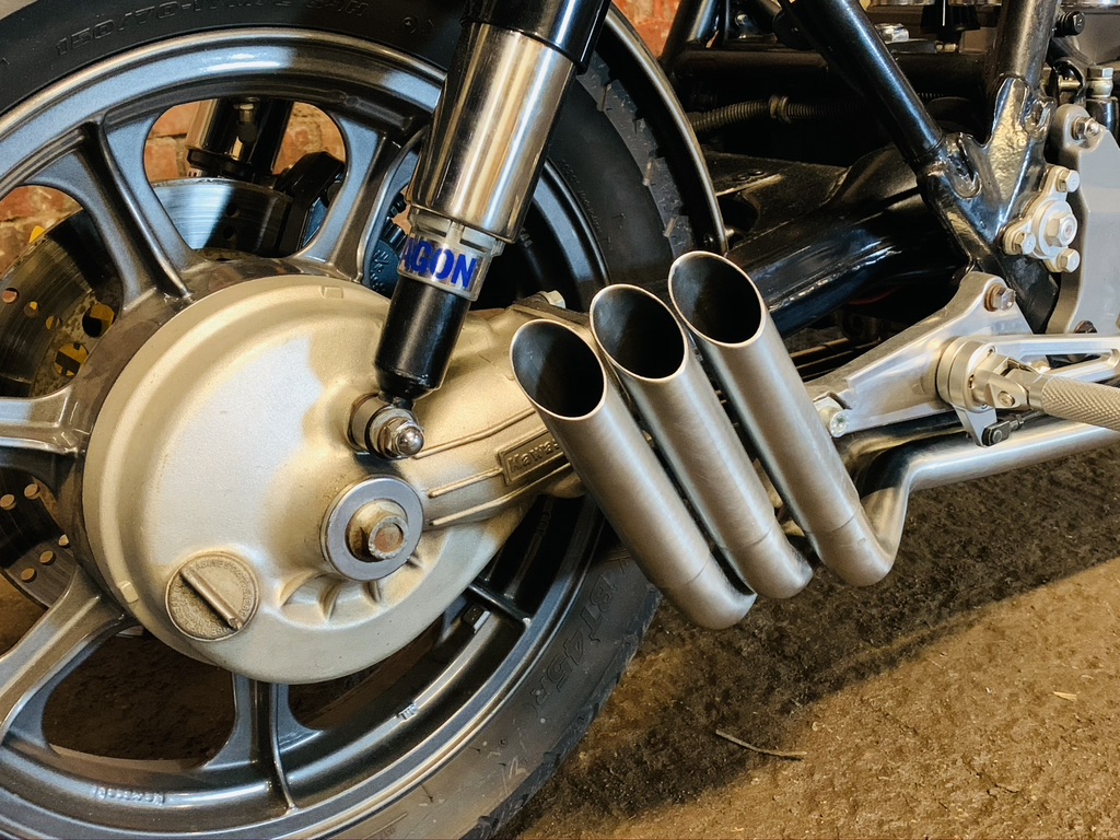 I am also of the restoration to ‘original state’ school, but on this occasion there was no paperwork or history whatsoever, the engine was completely seized -took me three months to get the pistons out of the block, electrics were fried, a large number of engine items were missing and the entire front end was off a z1000t, so there was little original. Currently on the bike the frame and engine are z1300 original, the tank is off a 1100 Zephyr and the front end is off a Multistrada, as that is the only bike with forks as long as the z1300.