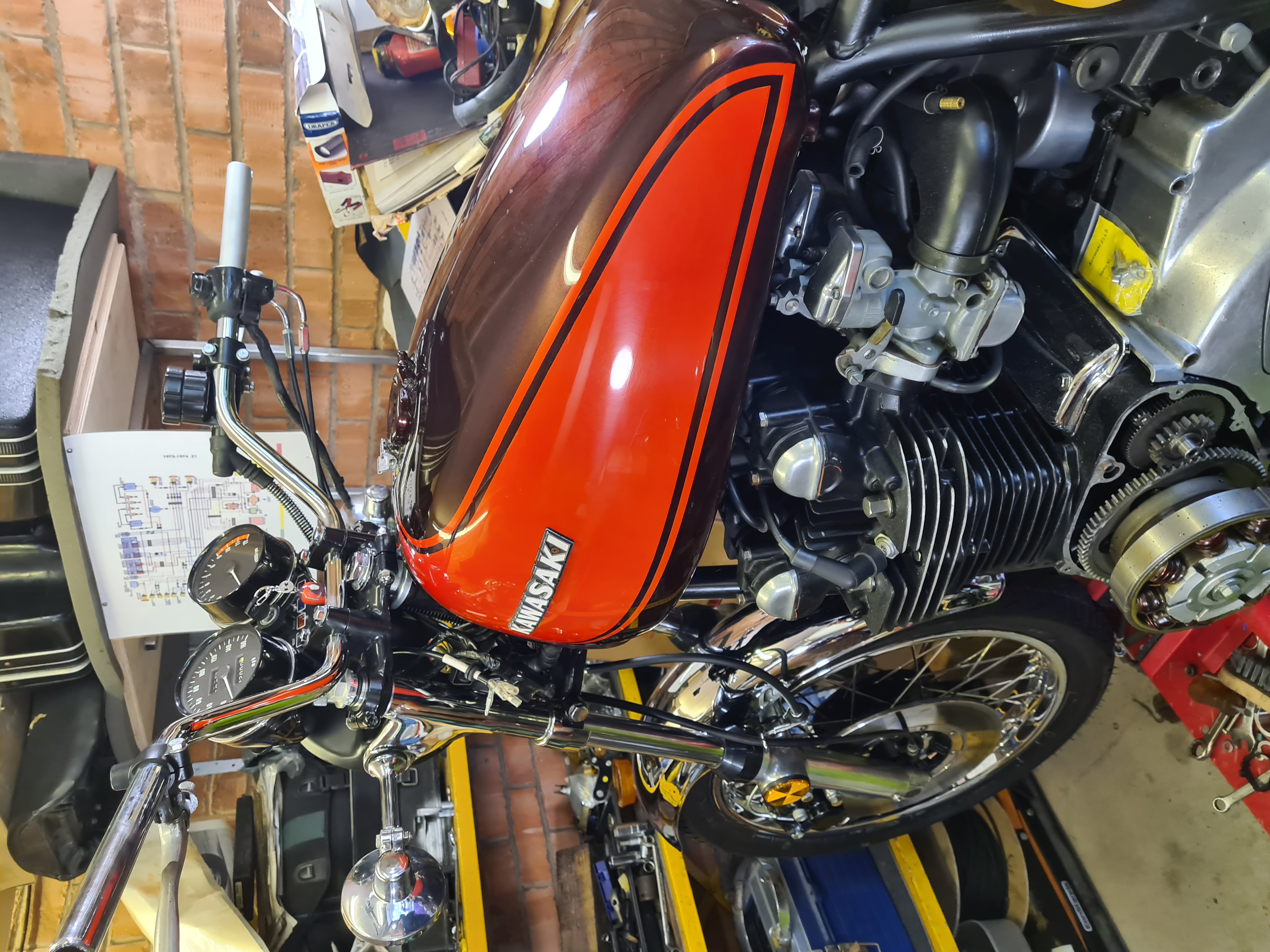 Just a small point, I have had to replace the handlebar switches with early Z1 replicas and also will be doing the main harness.