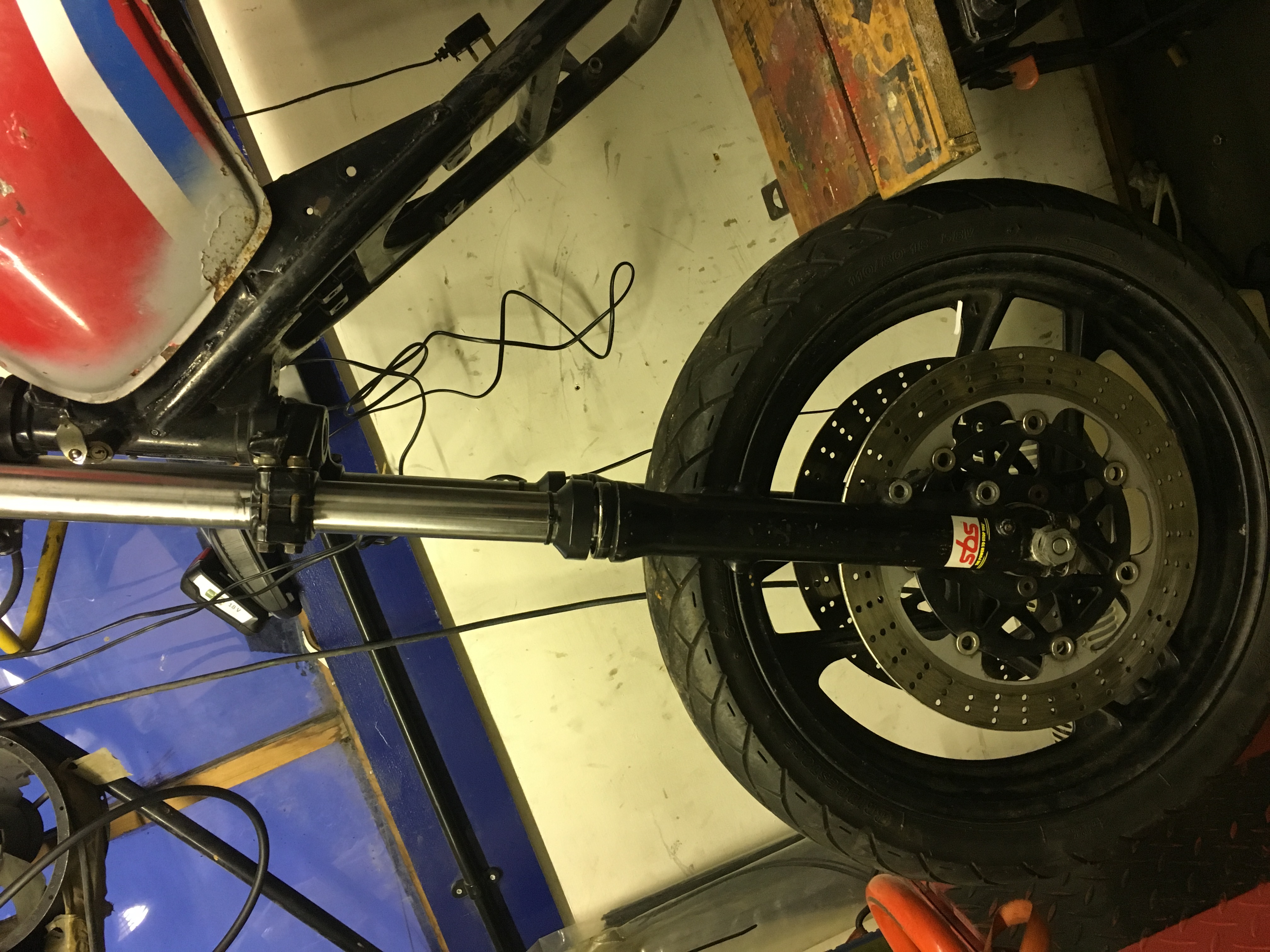 Also managed to find a swing arm spindle . So tried to fit a 1000 dresda with the rear slabby wheel but it was a bit tight accross the back wheel.