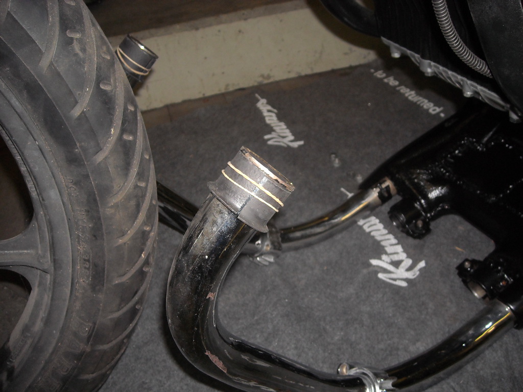 When putting the headers on, trying to hold the shells, the copper rings and mounting the exhaust crowns all at the same time, I often wished I had four hands but I don't so I use rubber bands to hold the shells onto the header pipes. After mounting the exhaust crowns they're removed by cutting them. A simple trick but very usefull.