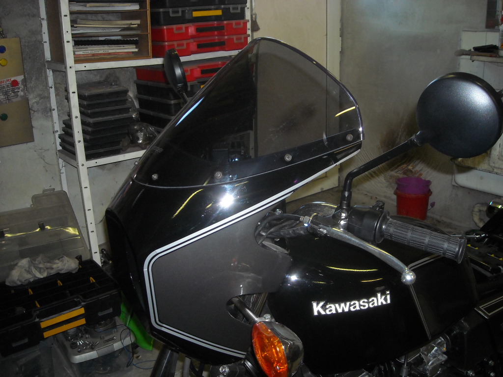 Original Kawasaki mirrors are ordered, I still need a windsreen, a Z1R muffler and an ST saddlepan.