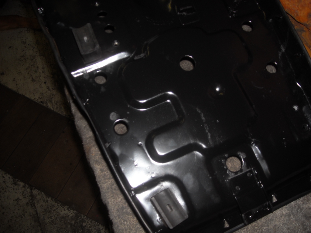 Yesterday the temperature was high enough to paint the seatpan. Allthough not high enough for drying so I took it inside for the paint to cure.
