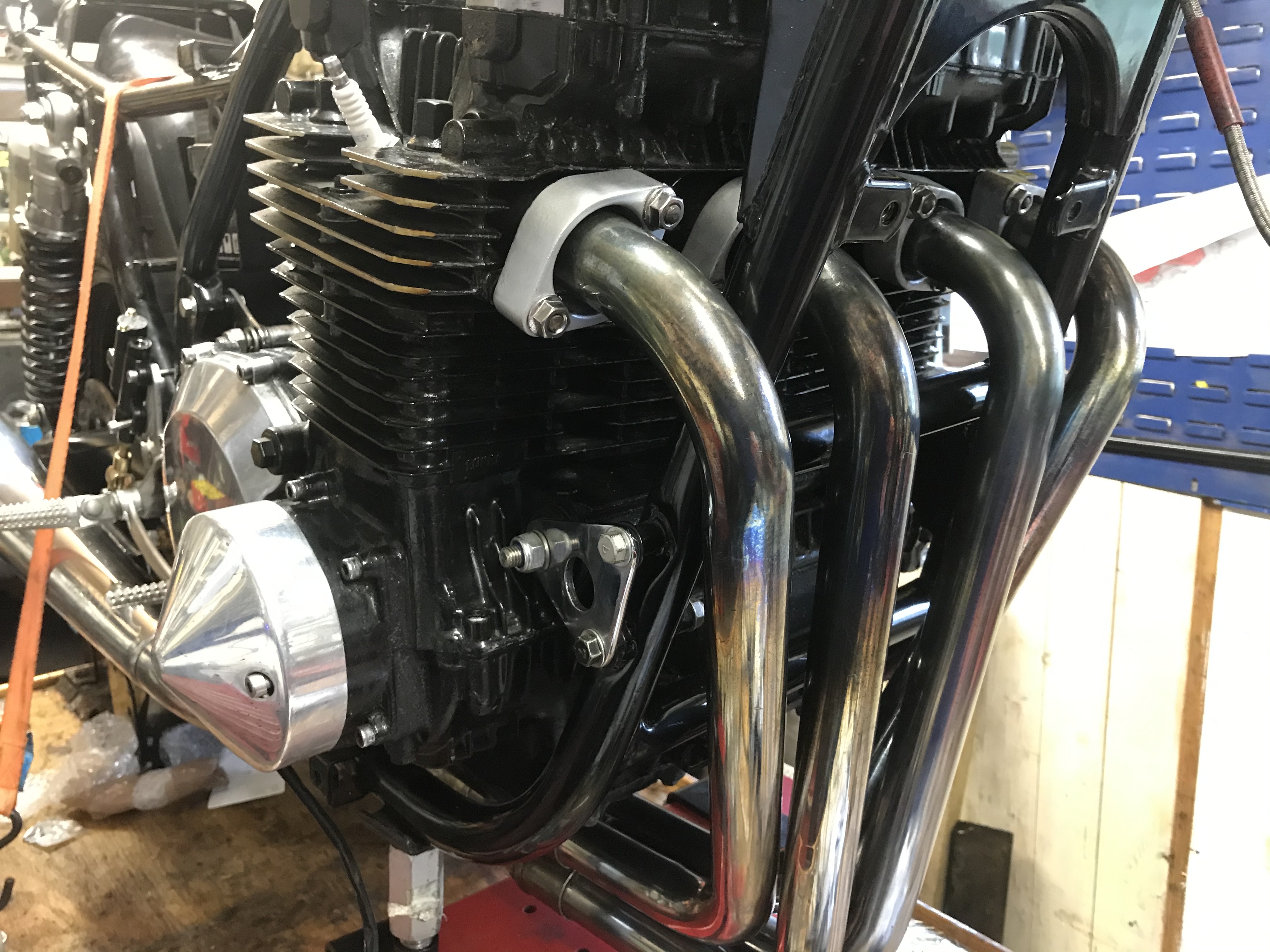 I made some footrest plates and some rearsets from old gsxr ones and then had anightmare trying to get an exhaust to fit. Ended up with using a set of Harris pipes I had for another bike, but they seem to fit ok now.