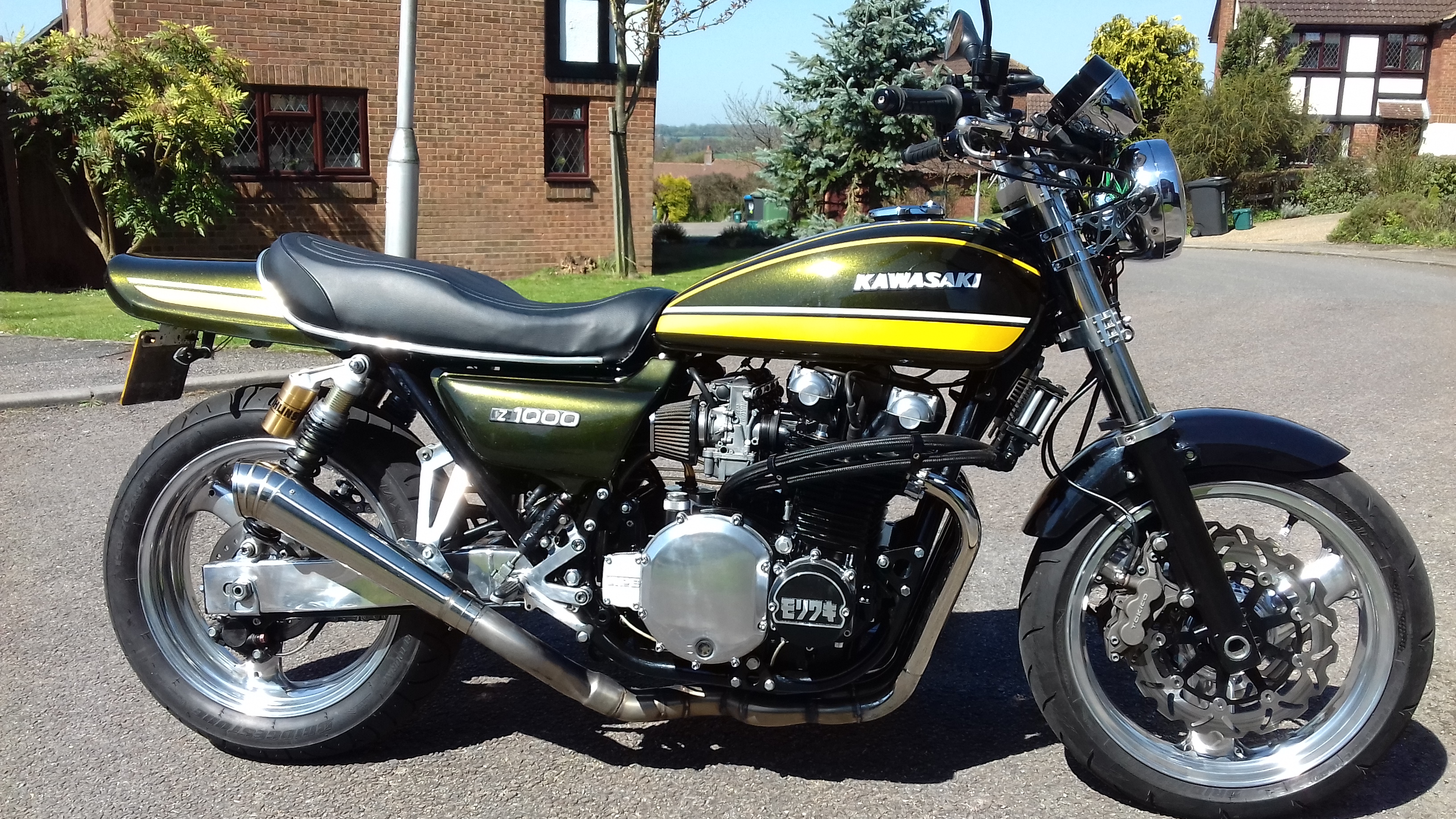 bought this just over a year ago , wasn't happy with the upside down forks , the engine needed some work , felt it wasn't running well, gave it to buzzard , he sorted the engine out and rebored it to 1075 , changed forks to zrx and custon yokes , cleaned it up etc and this is the end result