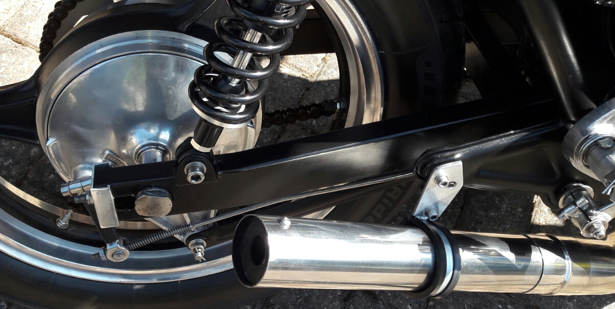 Looks like a mod'd Dresda swing arm to me. I've one on a 650.