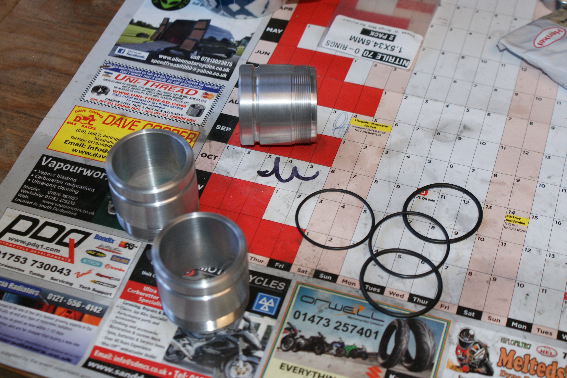 I designed some inlet pieces for the CR carbs which cam without any fitted as P1 only had Suzuki rubbers left in their cupboard. Got them CNC'd and a variety of o-rings to see if i can fit and seal. I had to cut a releif in the threaded ends so the thread would bottom out once in the carb.