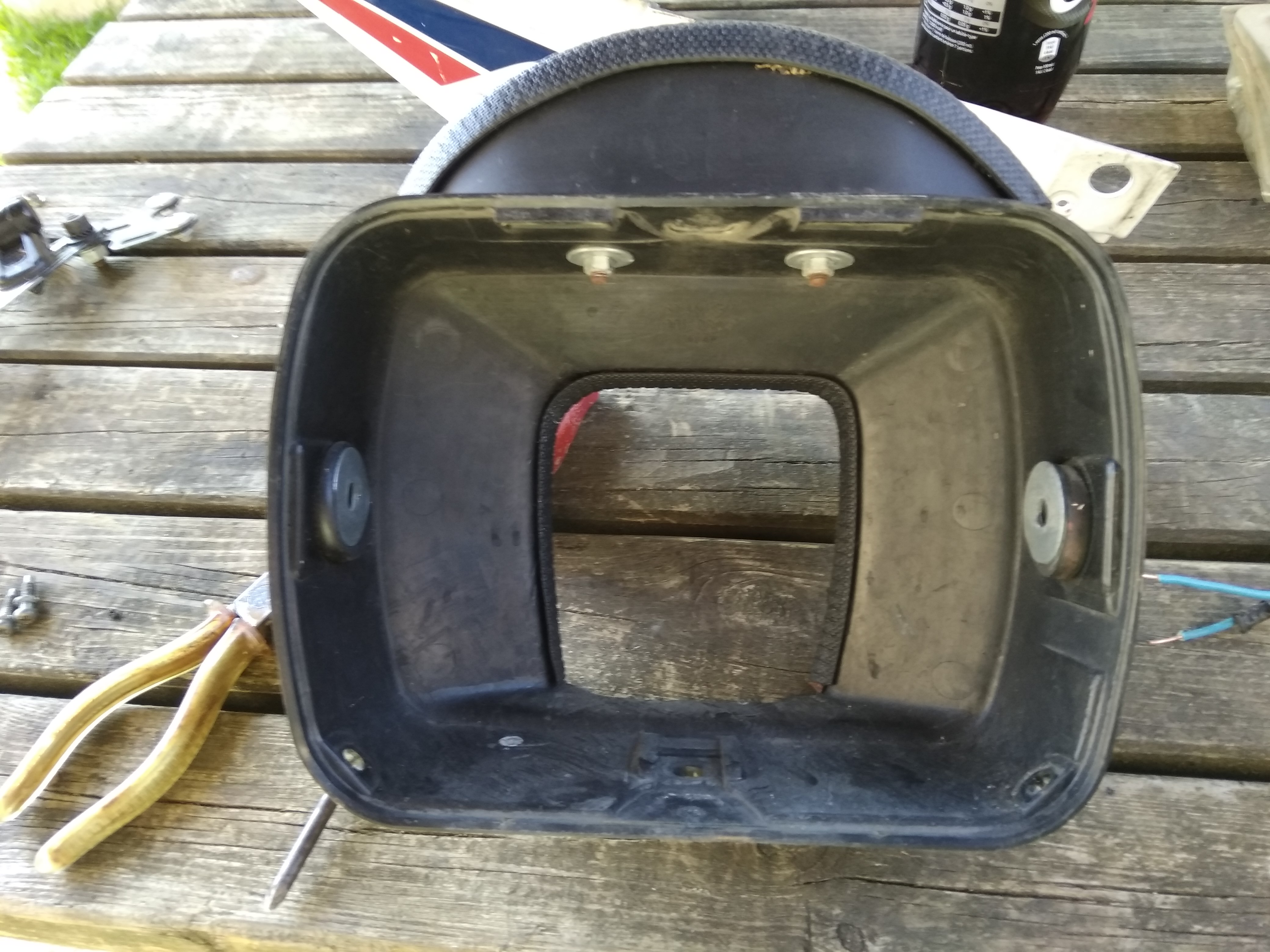 The indicators were interesting, bit of 1.5mm neutral house wiring and then fibre-glassed to the original indicator mounts