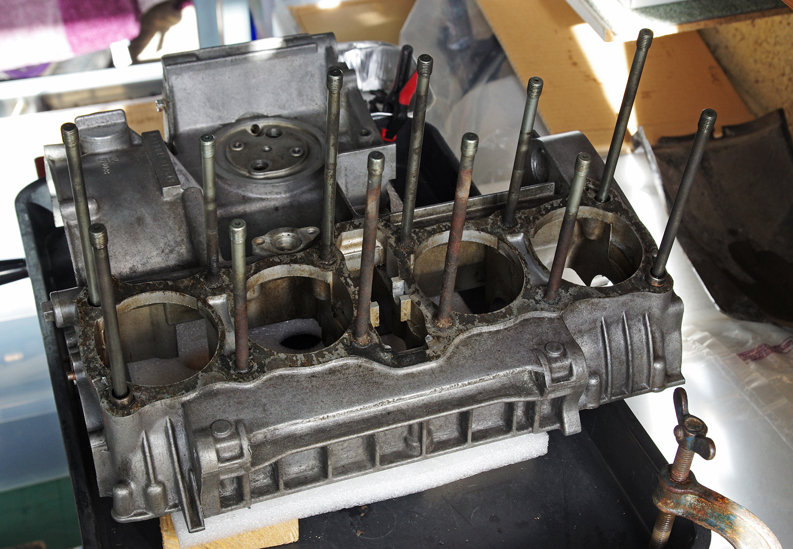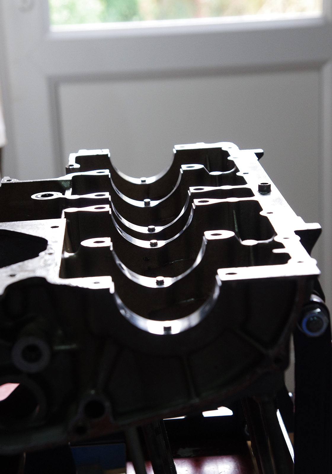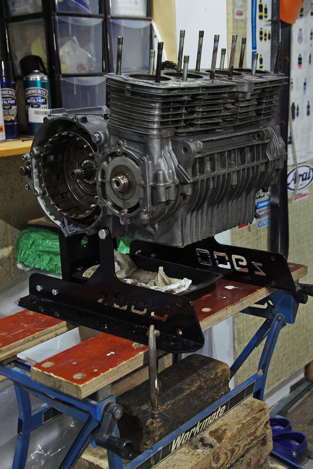Gaskets removed, crankcases repaired, carbs rebuilt, oil pump rebuilt, barrels rebored, head, barrels and crankcases and a few other bits vapour blasted, various bits purchased (new crankcase bolts, output shaft bearing, odds and sods). Now getting ready to rebuild the motor. But here are some photos of a few of the jobs done earlier this summer...