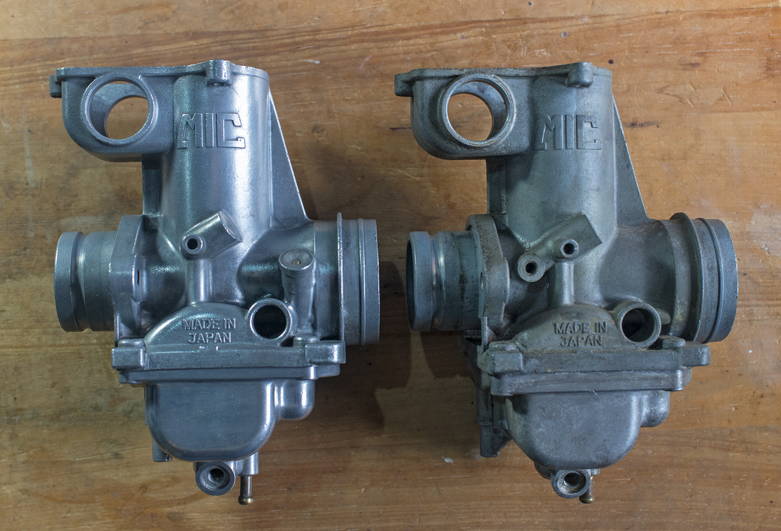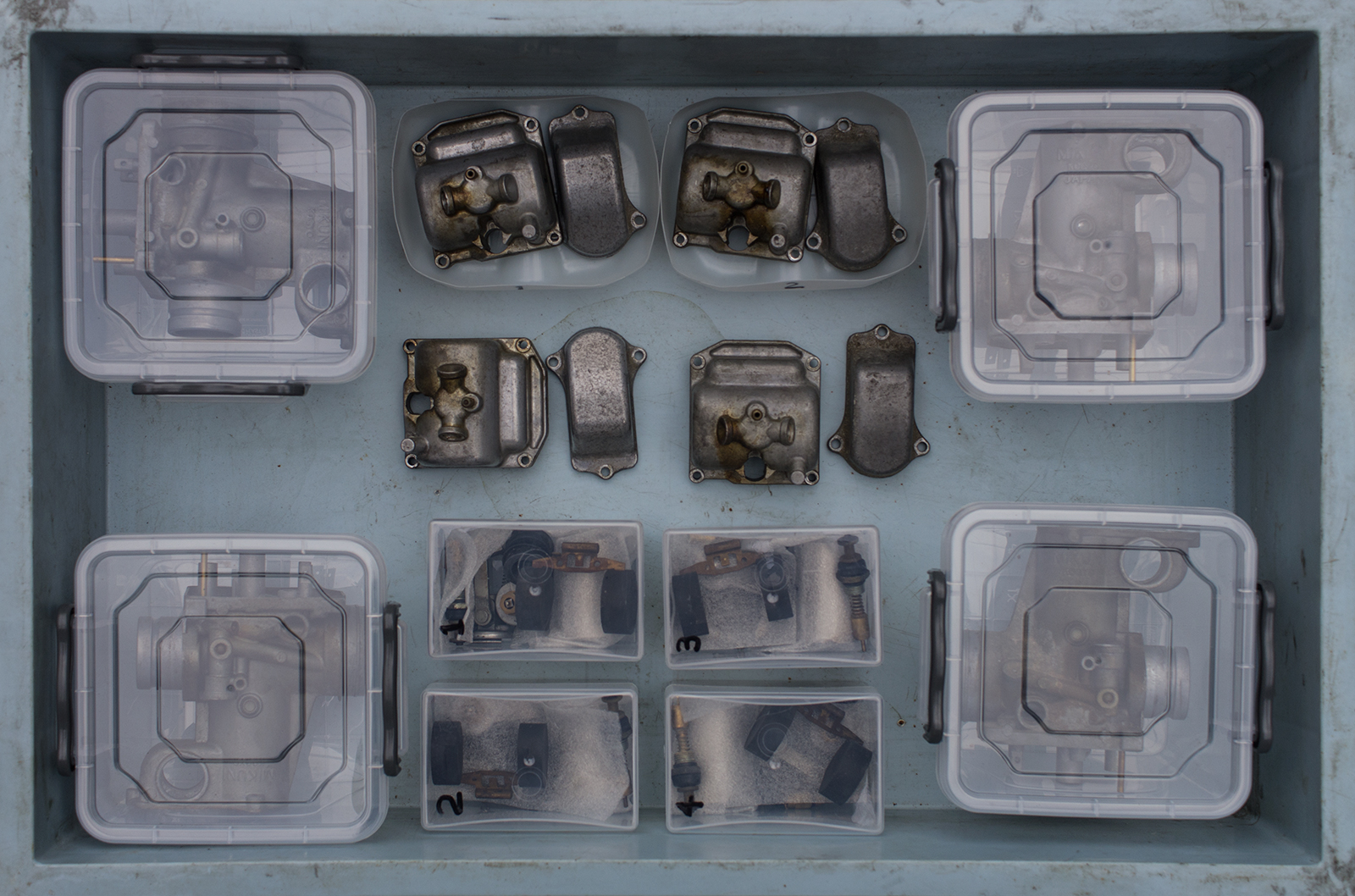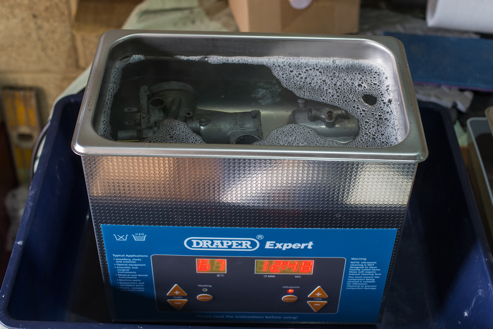 Gaskets removed, crankcases repaired, carbs rebuilt, oil pump rebuilt, barrels rebored, head, barrels and crankcases and a few other bits vapour blasted, various bits purchased (new crankcase bolts, output shaft bearing, odds and sods). Now getting ready to rebuild the motor. But here are some photos of a few of the jobs done earlier this summer...