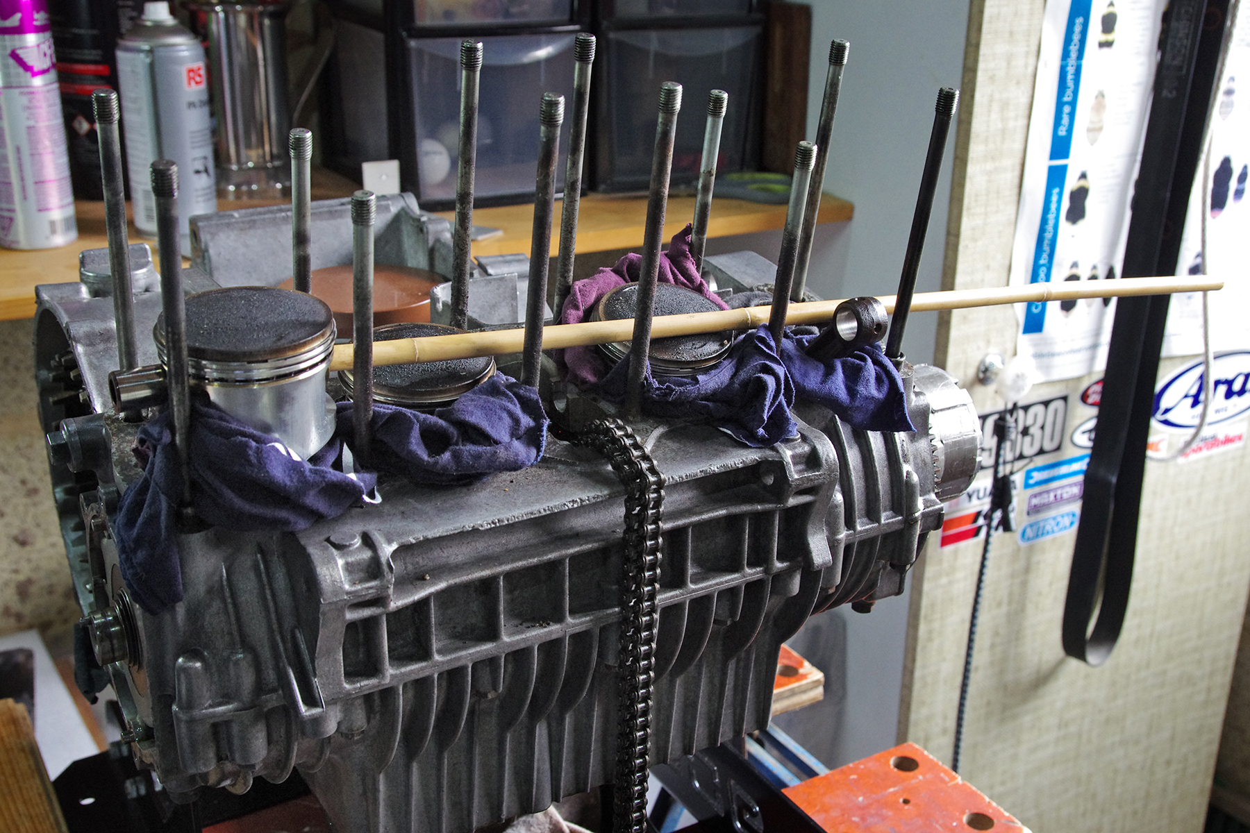 Next up: removing gaskets, taking the valves out, measuring ring gaps etc, stripping and rebuilding oil pump, carbs... the list goes on
