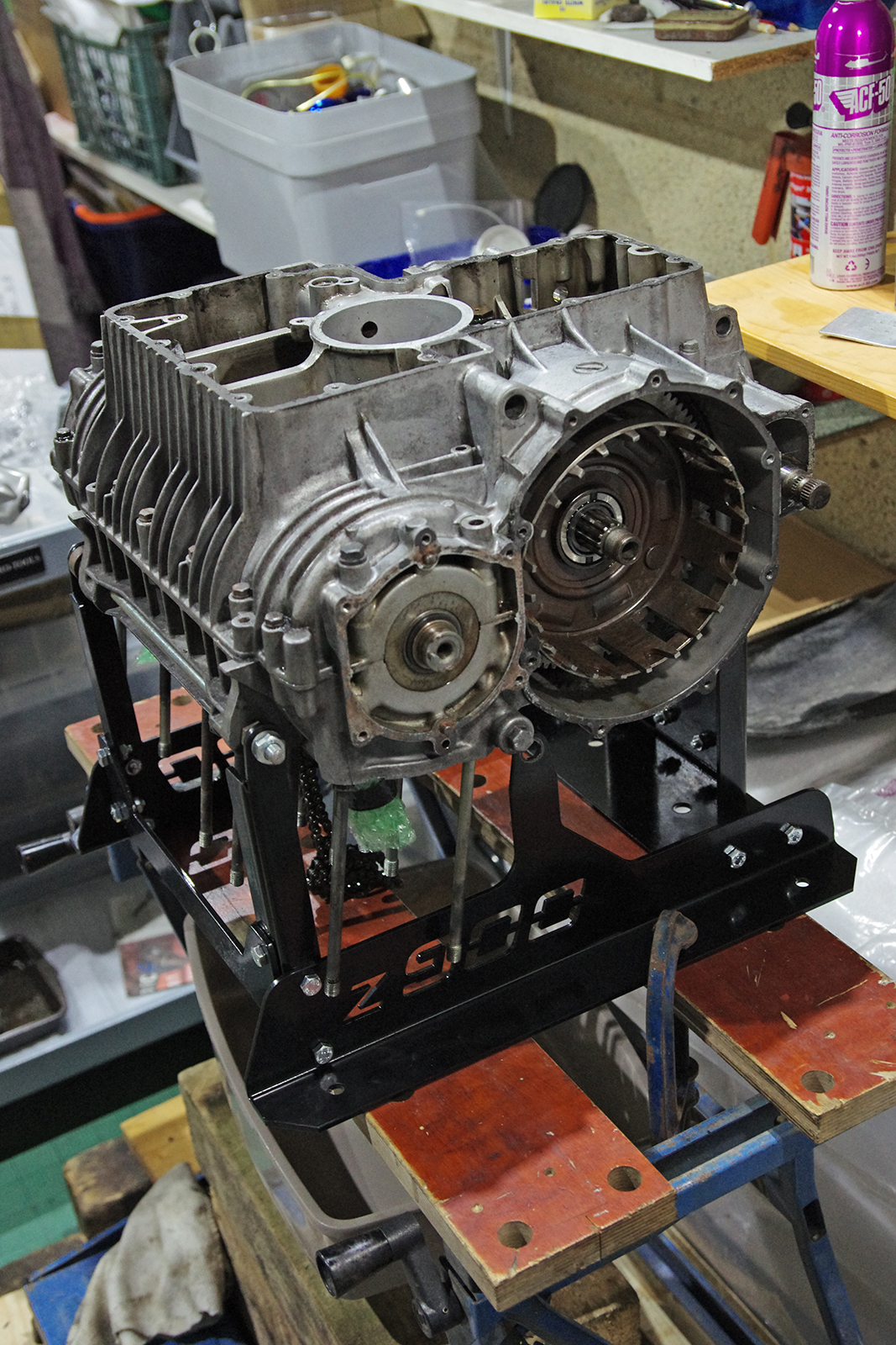 Here are several photos of the first stages of the engine strip. I suppose a lot of people on here have done this many times but hopefully enough of you will find it interesting. I like seeing what other people are up to bikewise! As you can see, I started with the motor on wooden blocks (they are an awkward shape, aren't they!) but I'd ordered the type of engine stand that used to be available through the club, now via eBay so that arrived and is just the job.