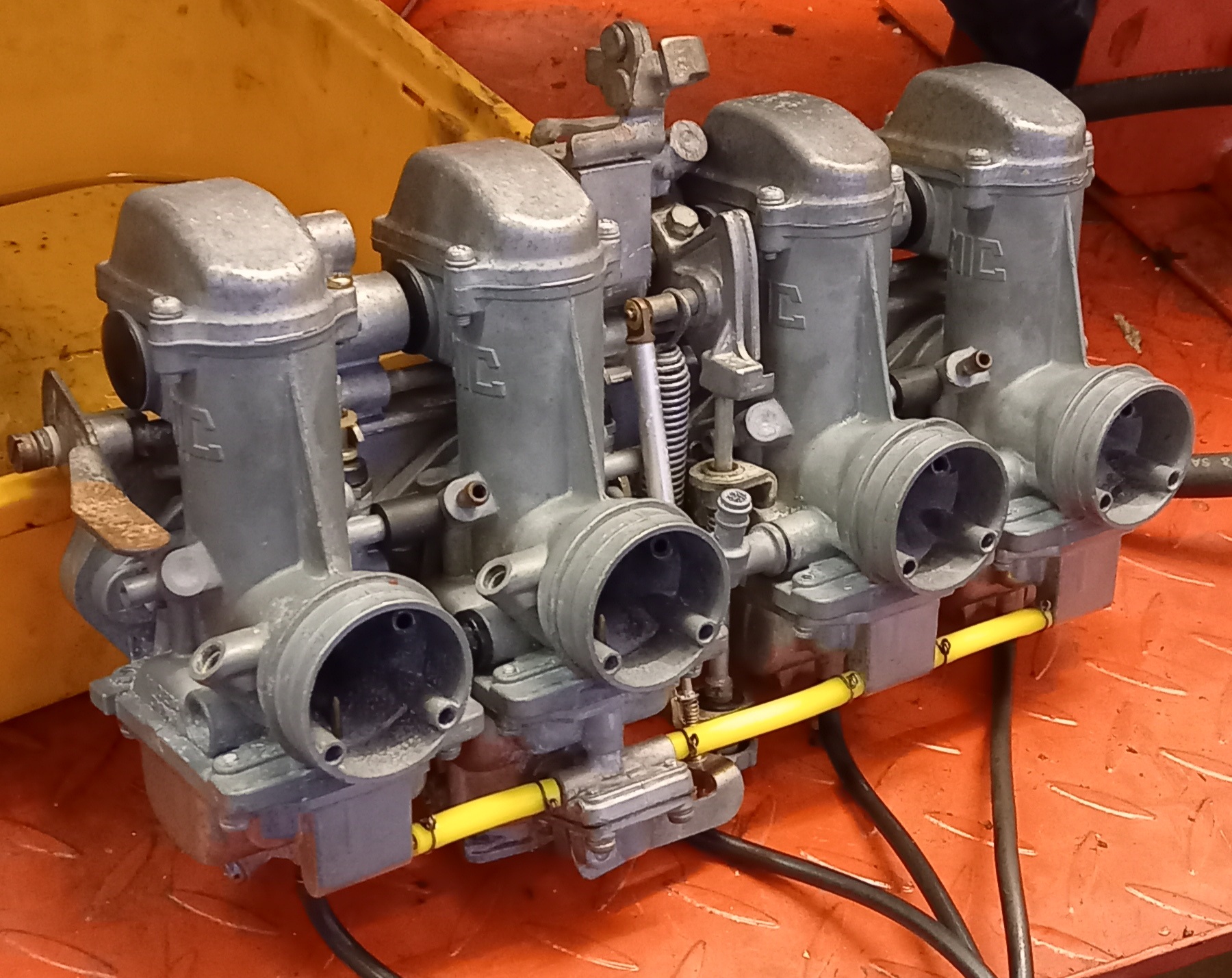 All internals super clean, new gaskets, floats set, static synchronised.....think I've got the air screw set right, 1.25 turns back?? but we'll see...