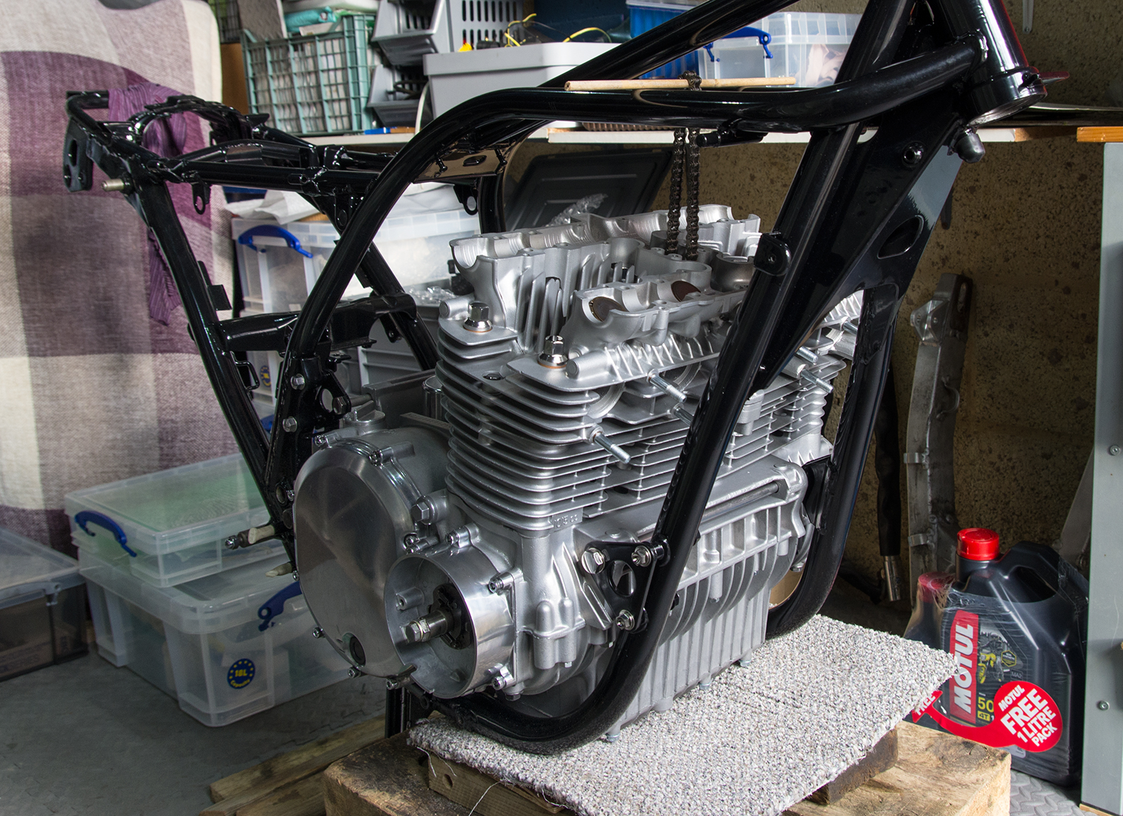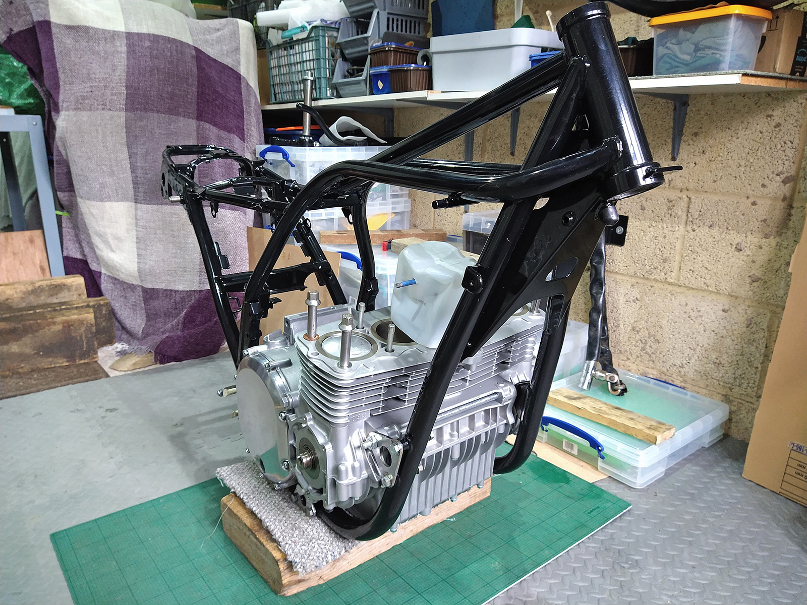 I've put the engine as it is so far in the frame, as it's easier to lift the frame over the motor when you only have your wife to help and with lockdown you can't really get someone strong round to help...
