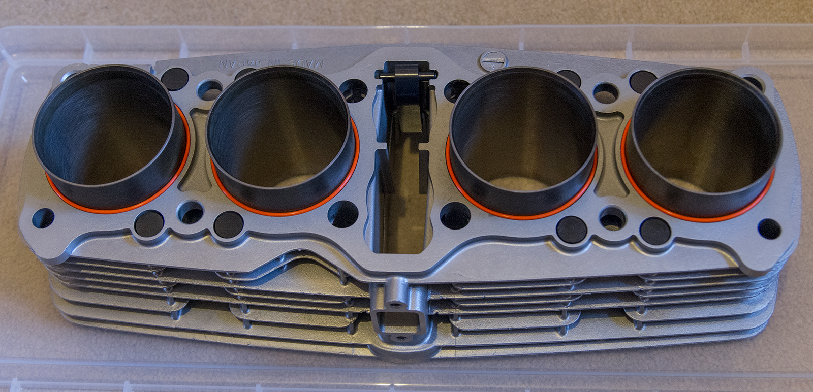 Prepared to put the barrels on... that was a bit stressful but I think I managed to do it without breaking any rings. Those oil rings are a bugger though - once they're on the piston, each end does like to tucking under each other rather than butting up.
