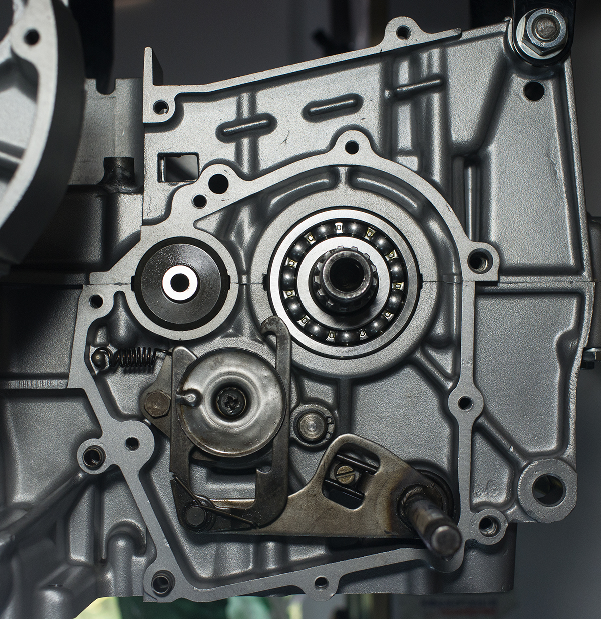 That is a brand new bearing on the output shaft, where the front sprocket goes by the way. I was paranoid about this because back in '87 I had one go when I was at the TT, and of course it's a crankcases split job. It was on a Harris Magnum II that I'd built that year.